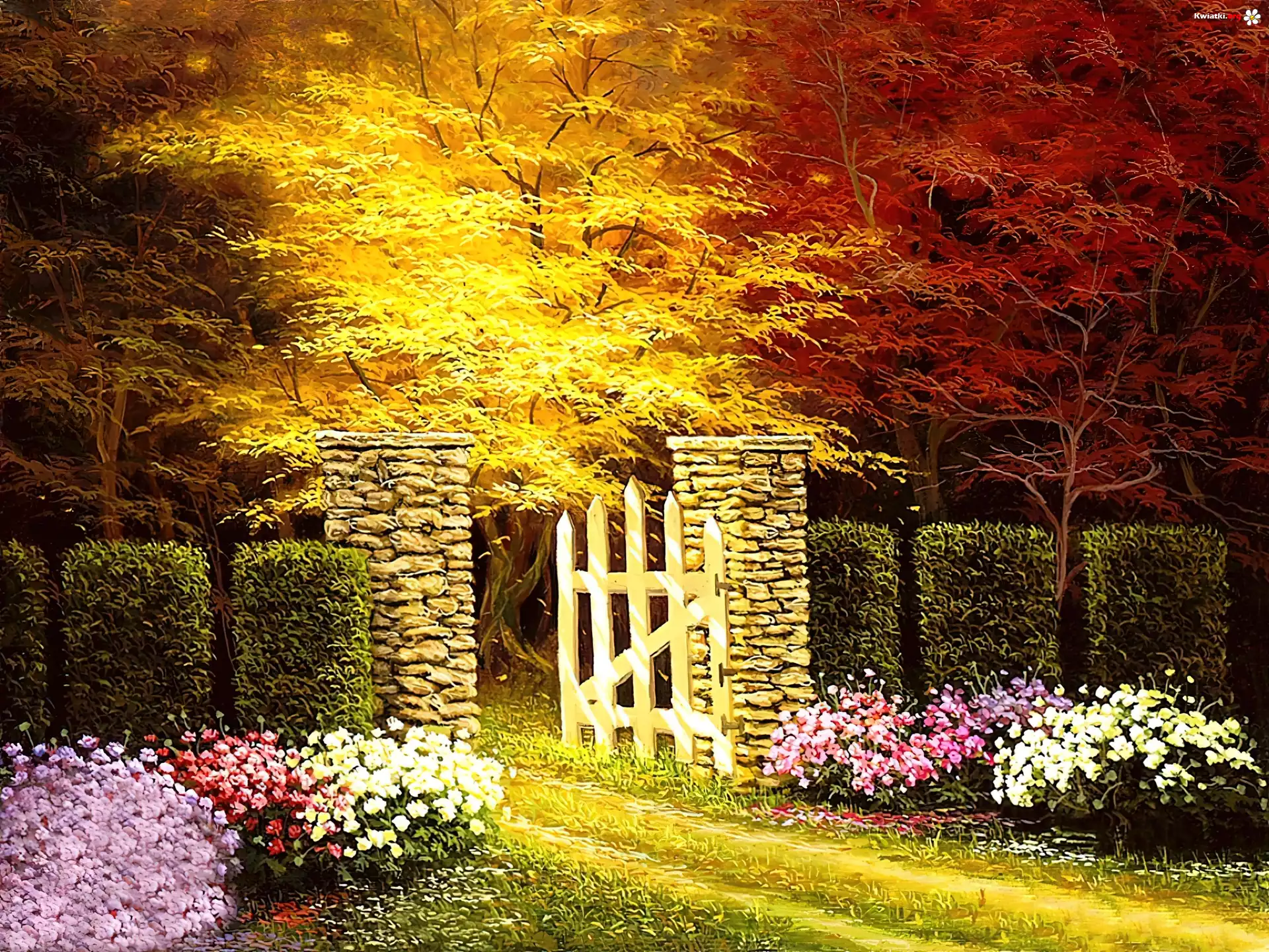 Kwiat Ogród, Droga, Bramka, Kwiaty