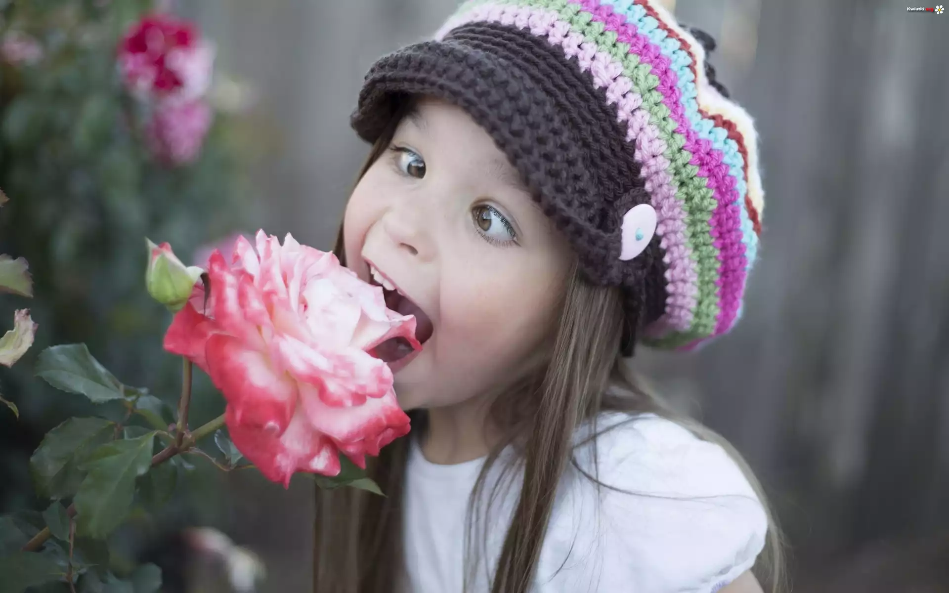 Dziewczynka, Ogród, Róże - Zdjęcia