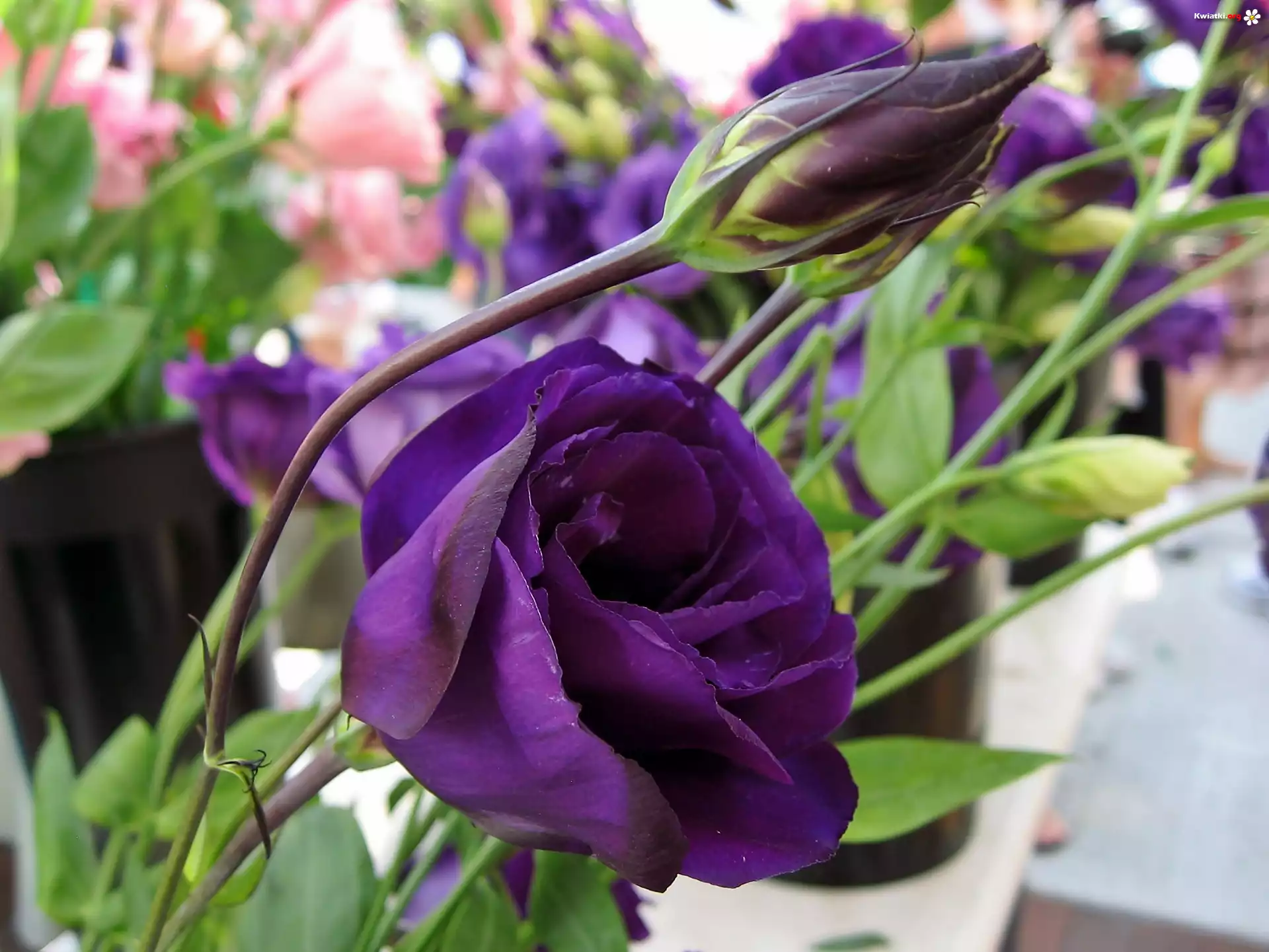 Kwiat Ogród, Fioletowa, Eustoma, Rozmycie