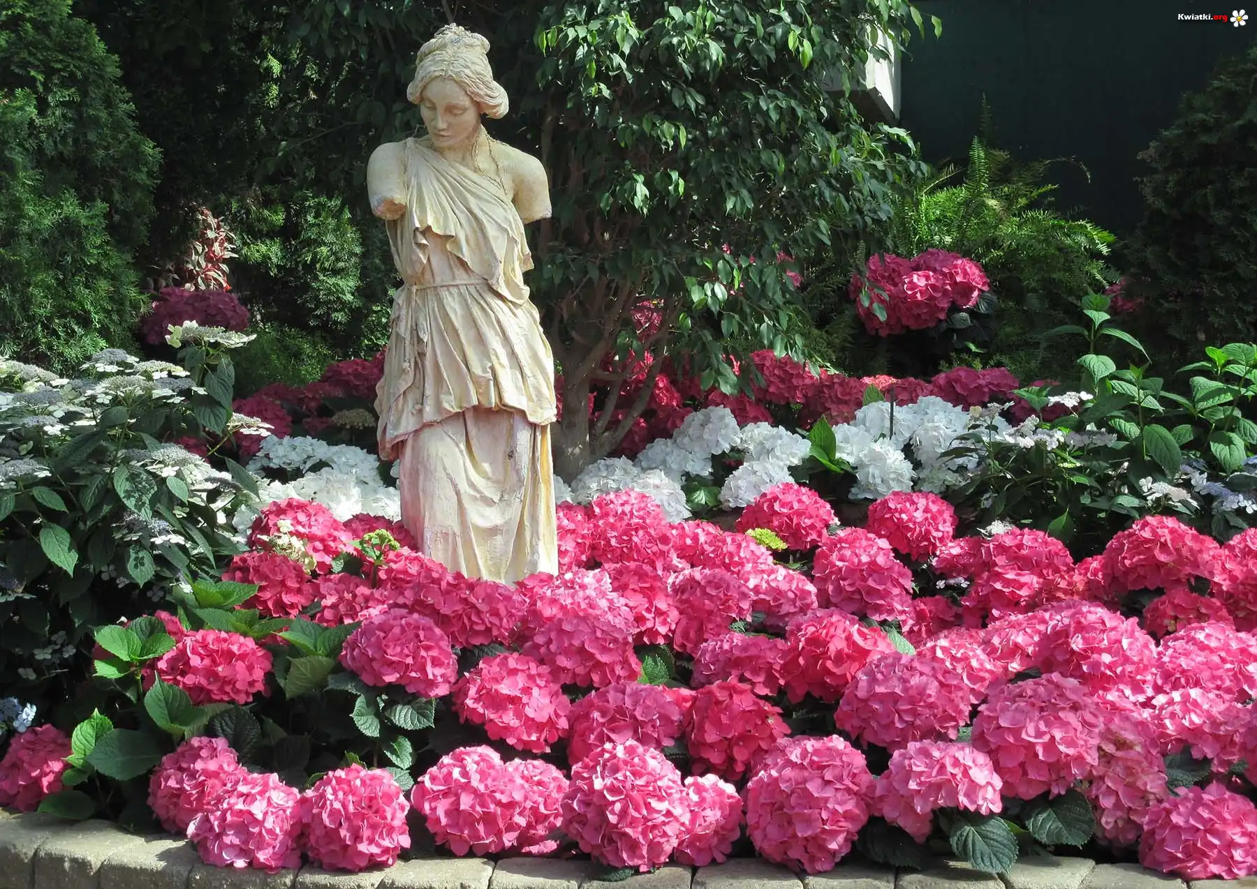 Ogród, Park, Hortensje, Posąg - Zdjęcia