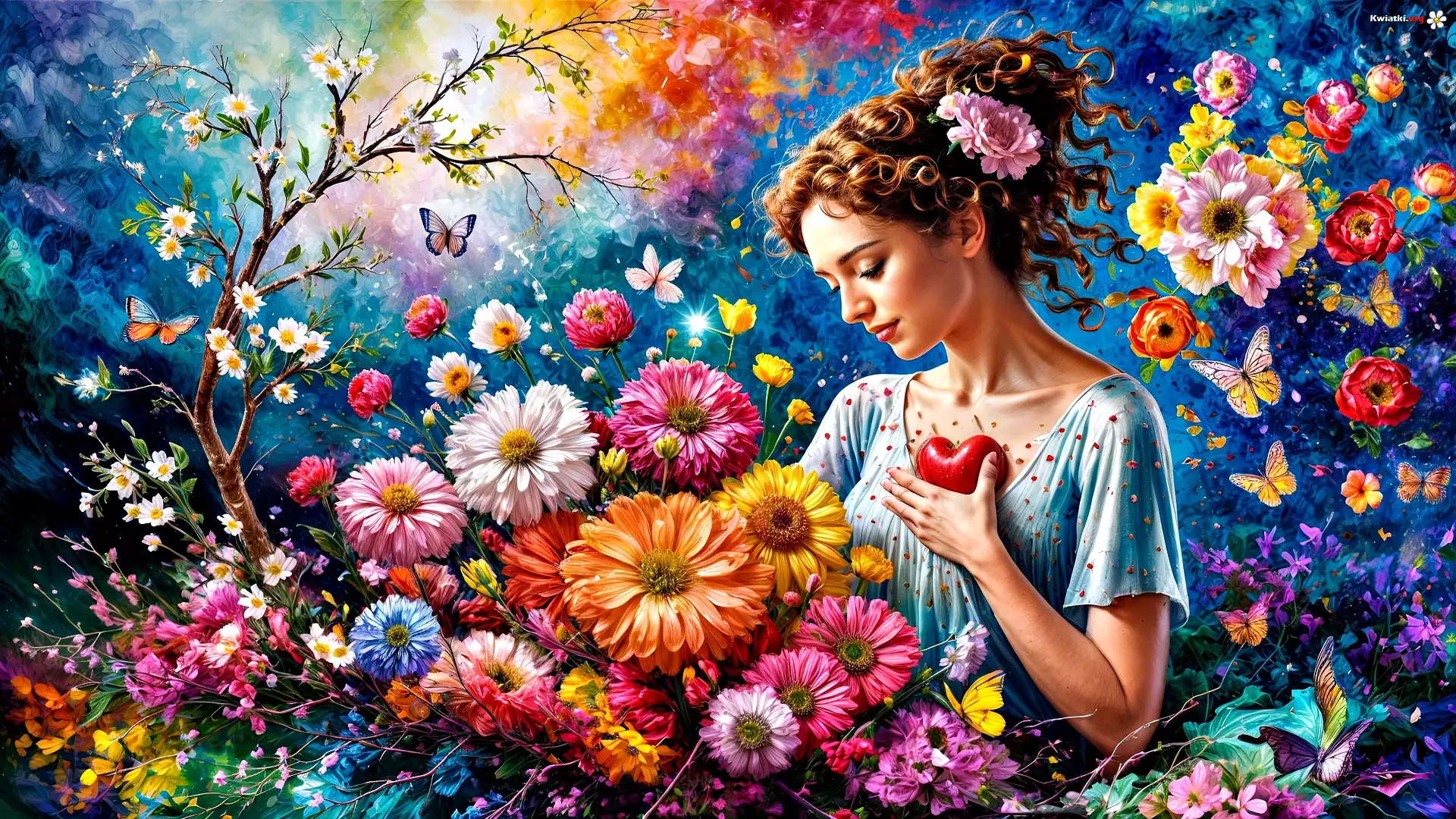 Kwiat Kobieta, Ogród, Kolorowe, Kwiaty, Grafika