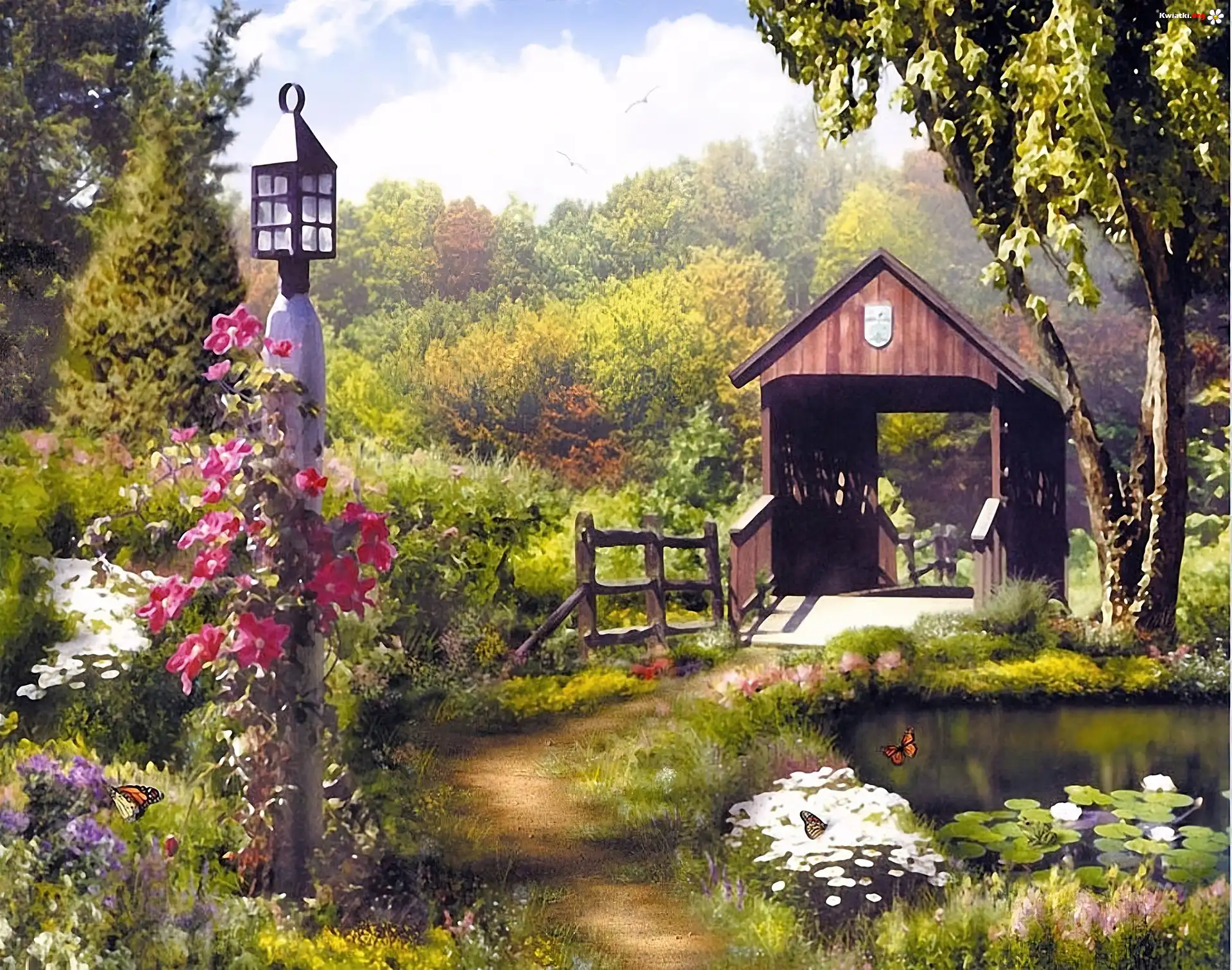 Kwiat Ogród, Kwiaty, Ścieżka, Kryty, Most