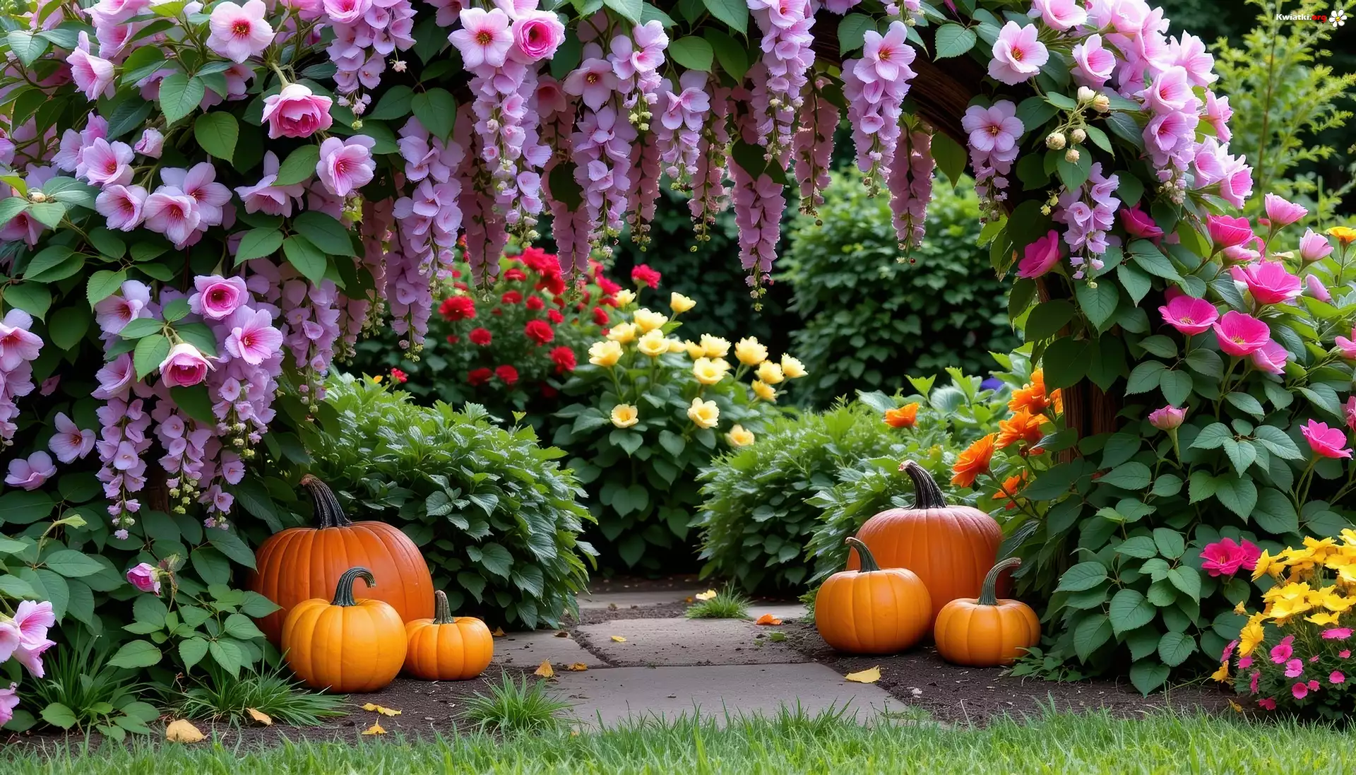 Dynie, Ogród, Kwiaty, Grafika AI - Zdjęcia