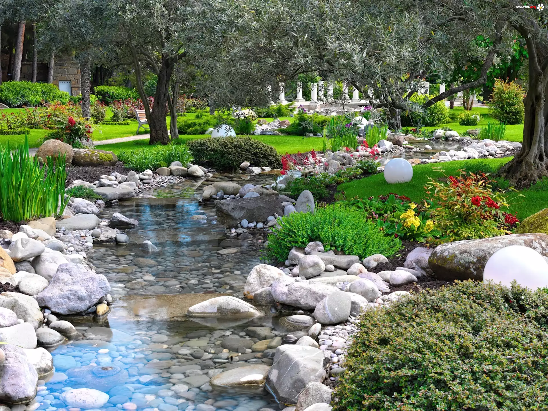 Kwiat Ogród, Oczko, Wodne, Kwiaty, Drzewa