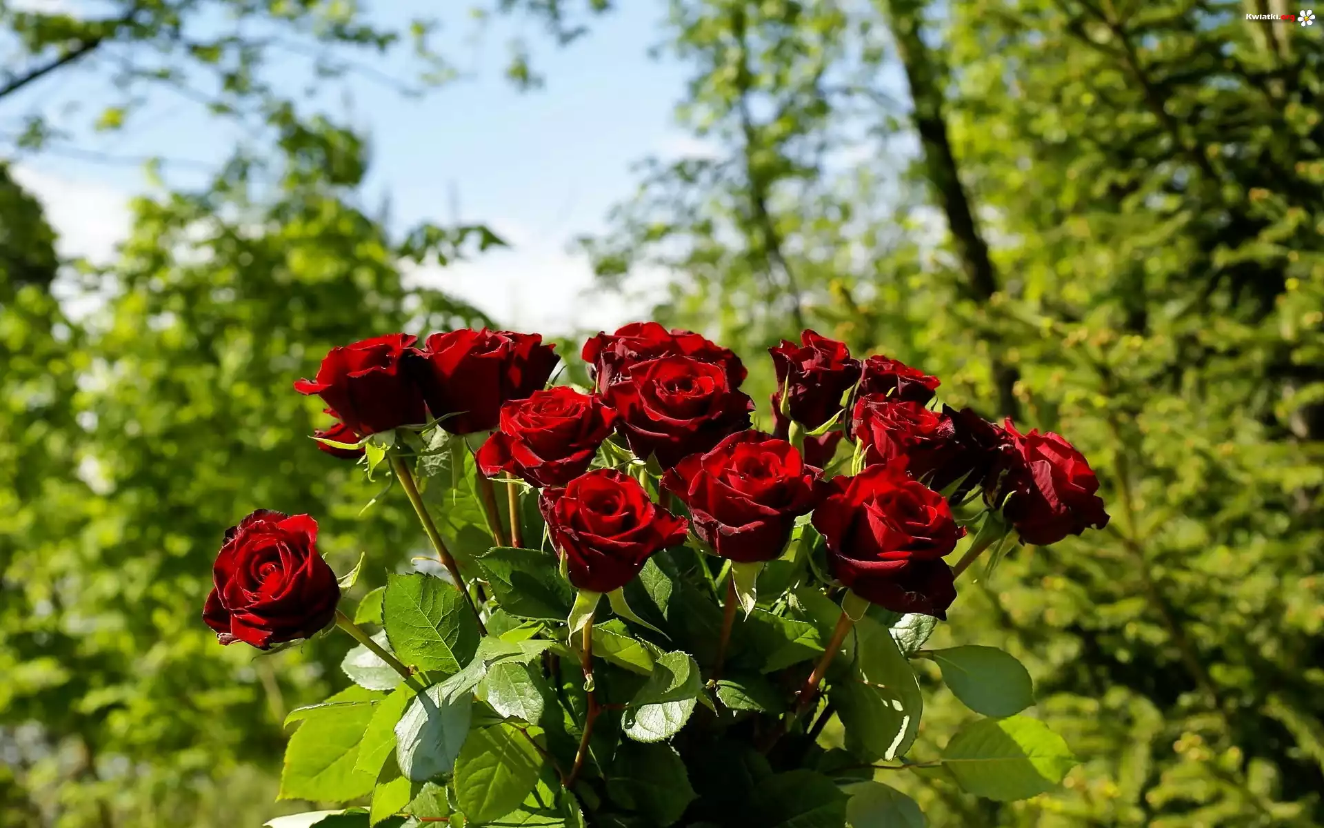 Ogród, Bukiet, Pąsowych, Róż, Rozmycie - Zdjęcia