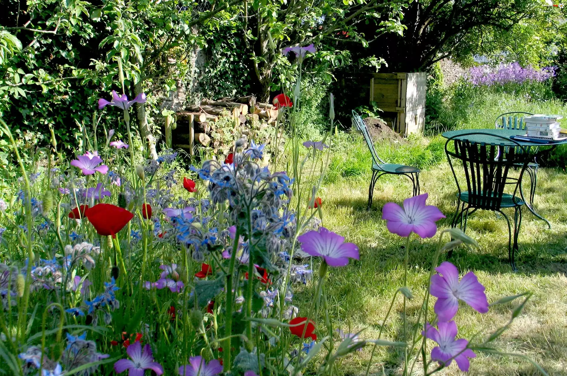 Ogród, Kwiaty, Stolik, Krzesła - Zdjęcia