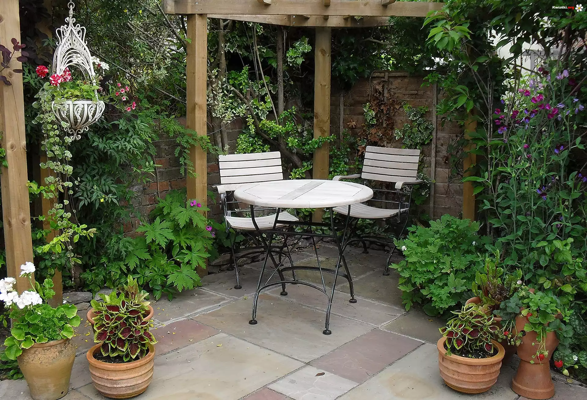 Ogródek, Stolik, Krzesła, Rośliny, Kwiaty - Zdjęcia