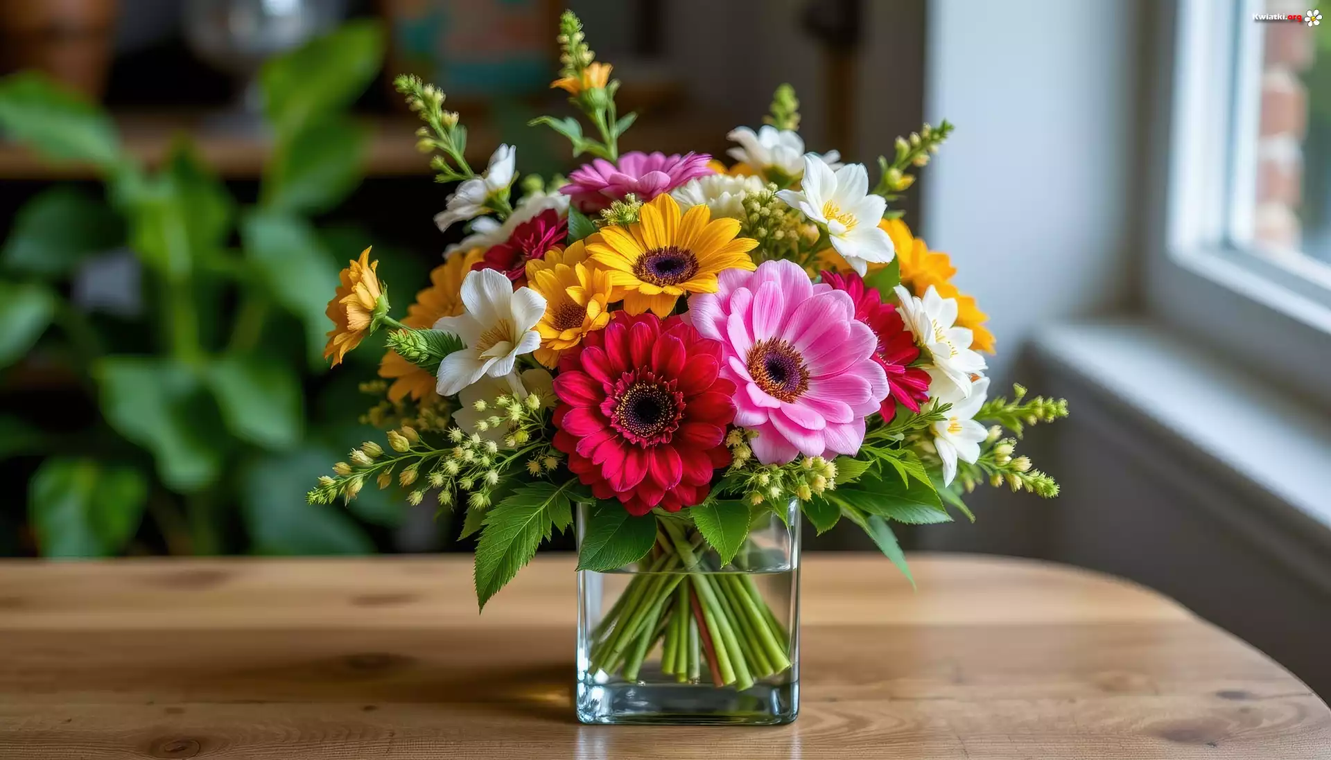 Kwiat Kwiaty, Bukiet, Blat, Okno, Grafika AI