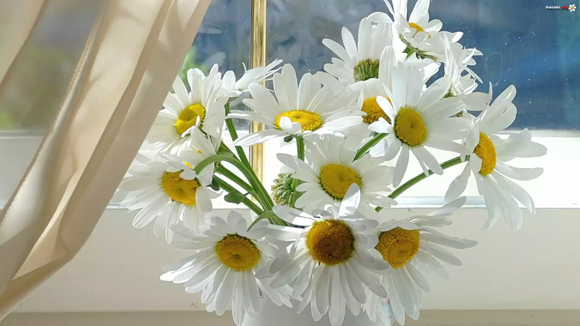 Kwiat Okno, Zasłonka, Białe, Margarytki