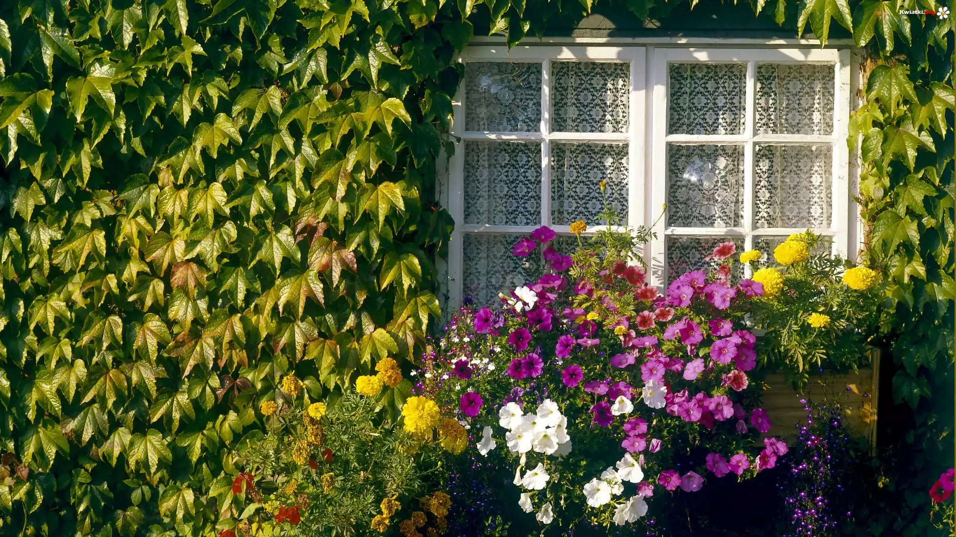 Kwiat Ściana, Bluszcz, Okno, Floksy