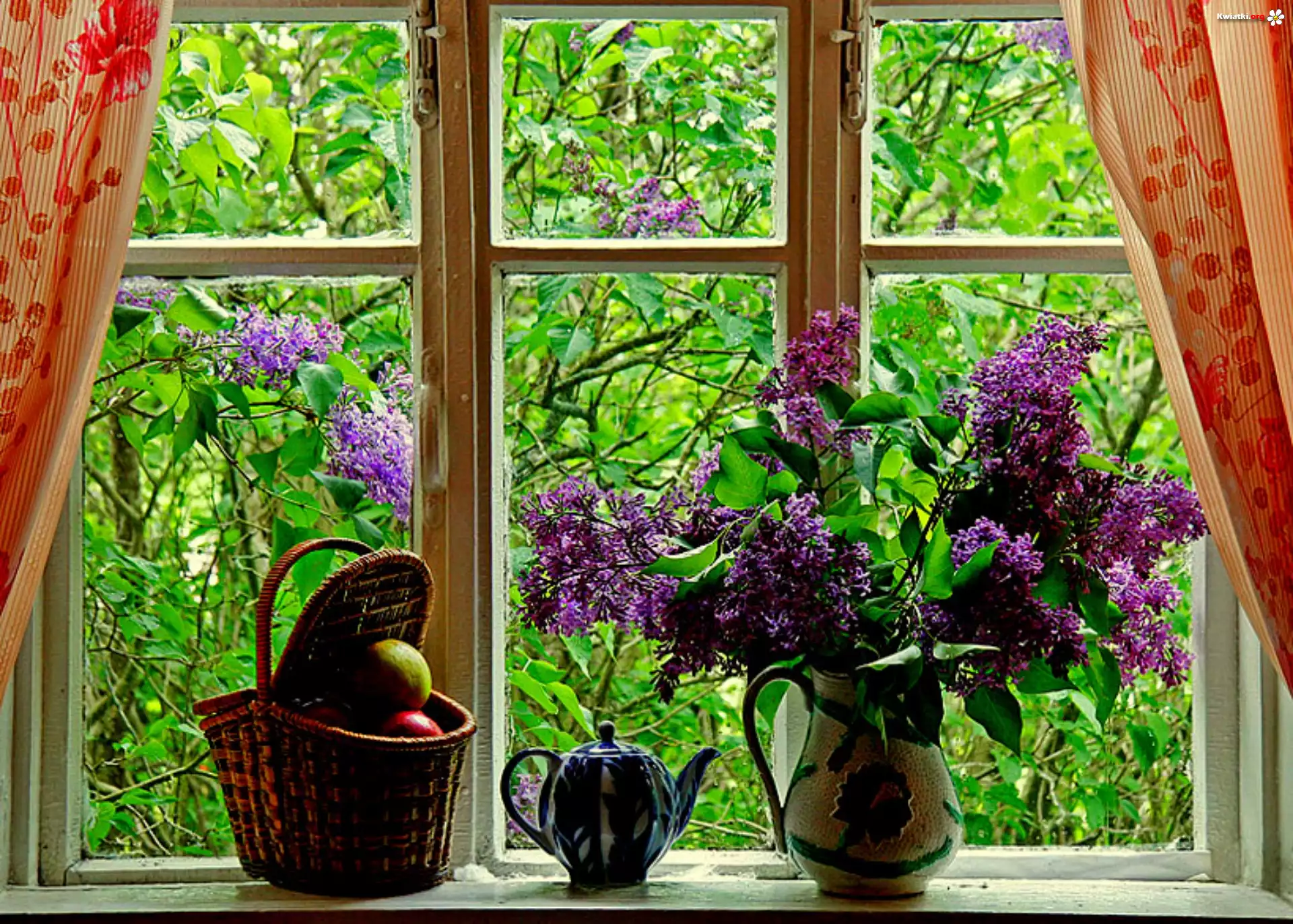 Okno, Drzewa, Kwiaty, Bez - Zdjęcia