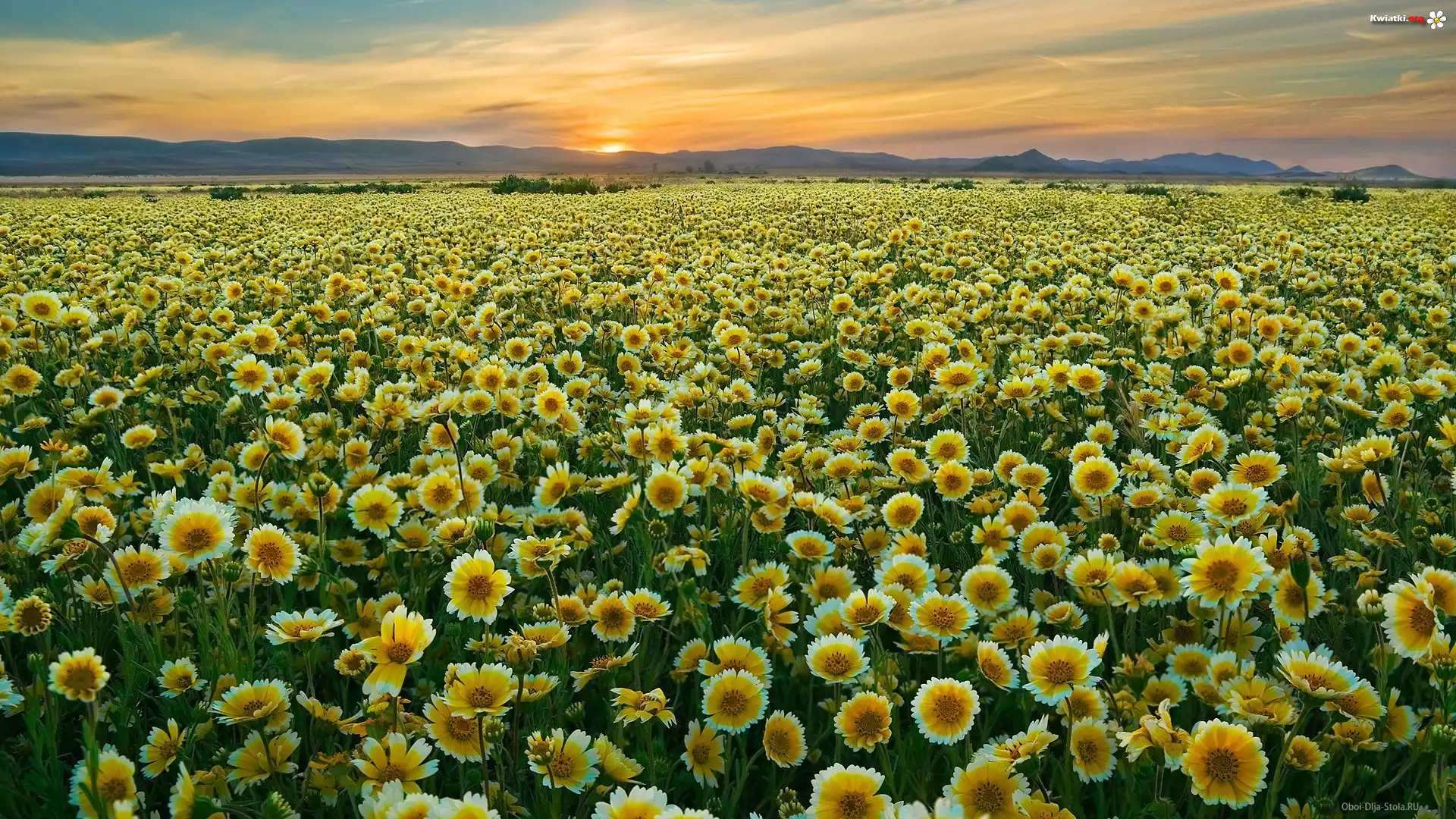 Kwiat Żółta, Gailardia Oścista, Pole, Zachód, Słońca