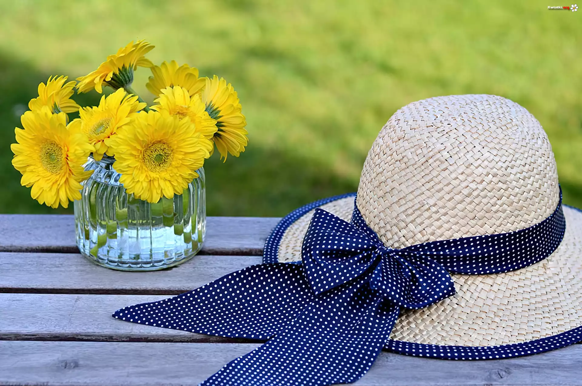Żółte, Margerytki, Letni, Damski, Kapelusz, Kokarda - Zdjęcia