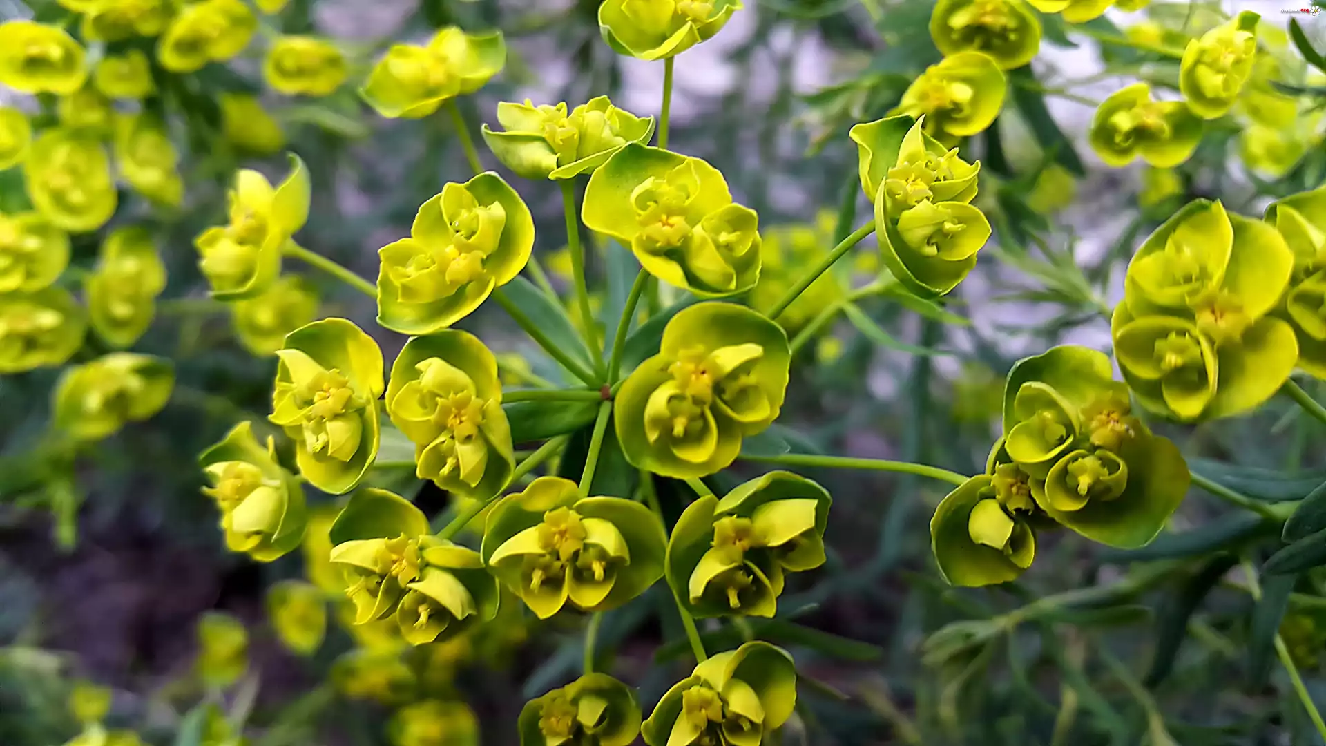 Żółte, Kwiaty, Wilczomlecz - Zdjęcia