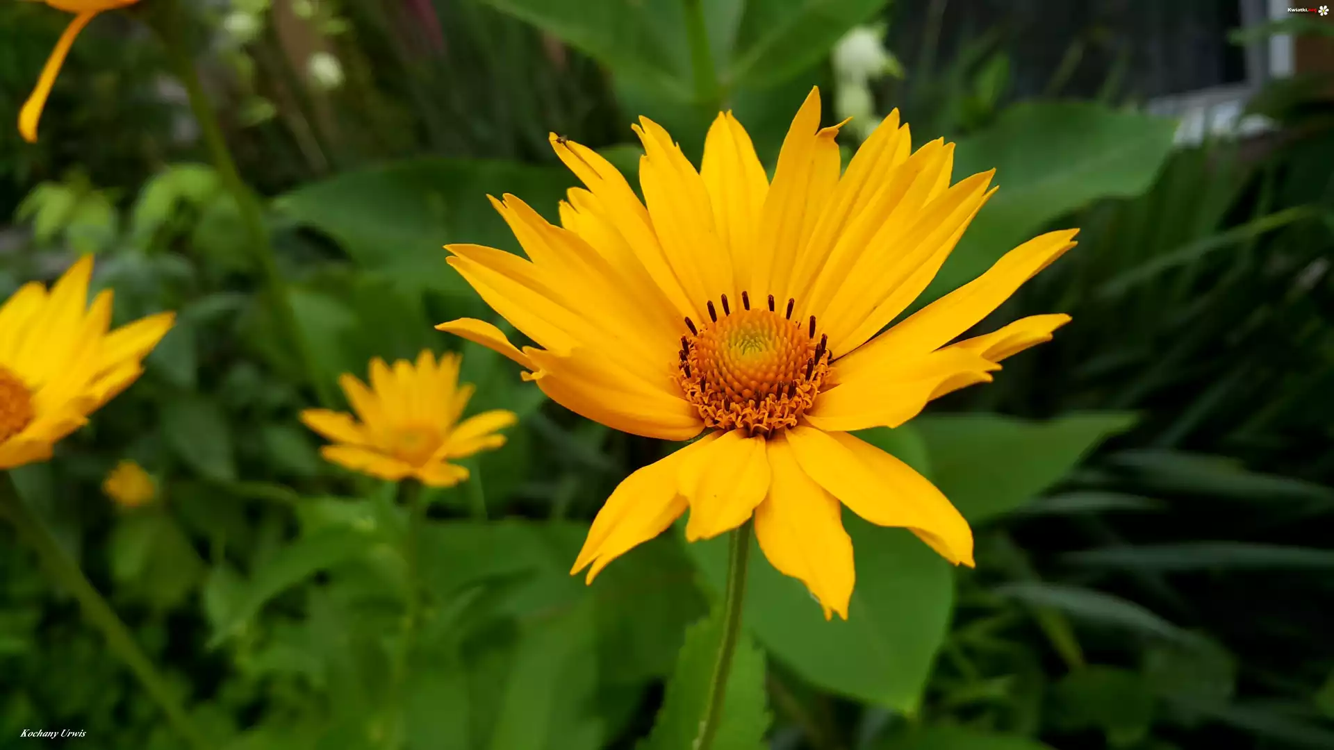 Żółte, Kwiaty, Słoneczniczek, Szorstki - Zdjęcia