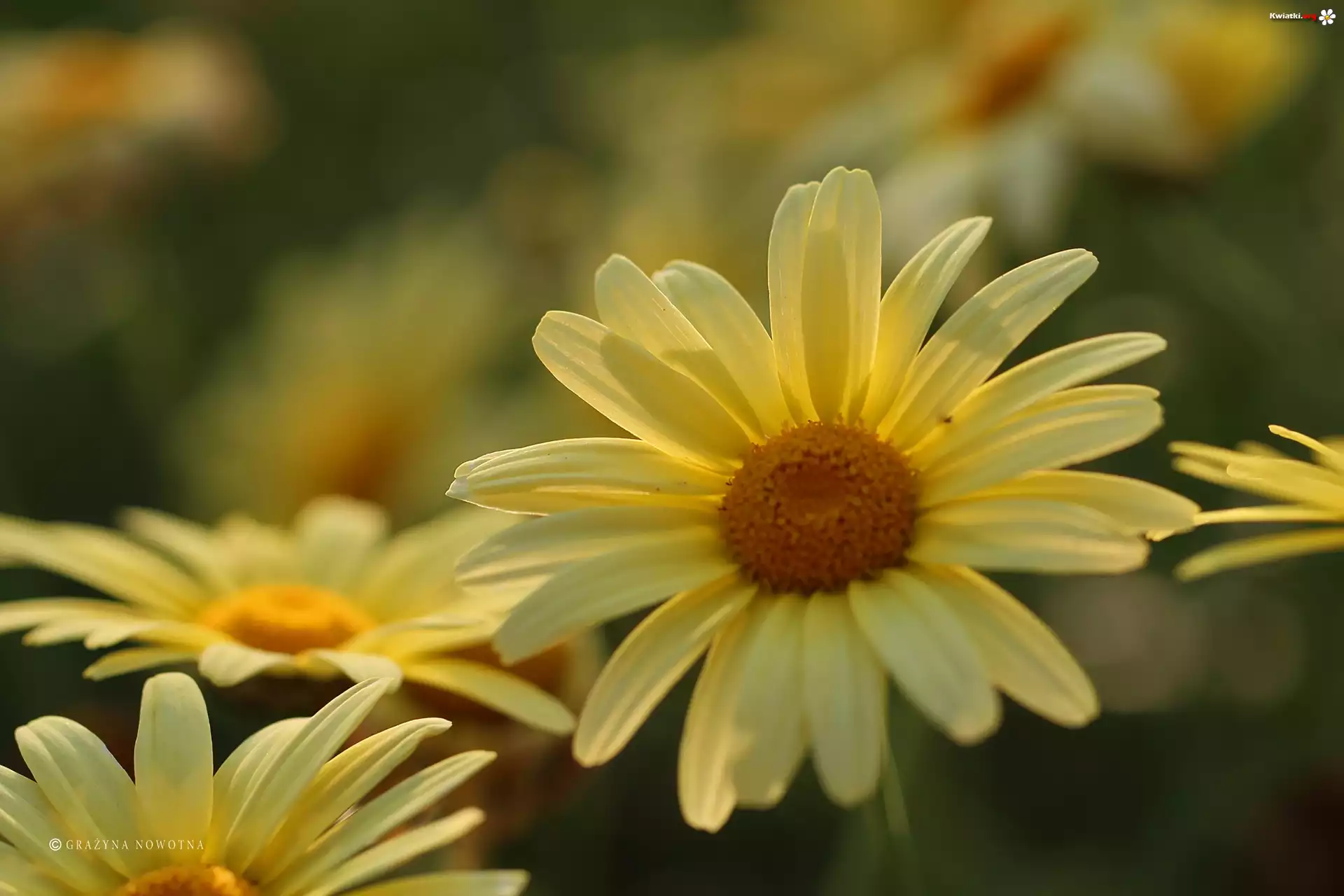 Kobieta, Żółta, Suknia, Białe, Kwiatki Koszyk, Drobniutkie, Kwiatuszki Kwiat Kalia Drewniane, Pudełko, Kolorowe, Kwiatuszki Góry, Fale, Krzew, Kwiat