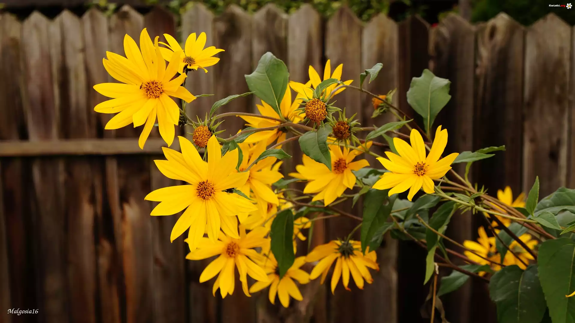 Żółte, Kwiaty, Słonecznik Ozdobny, Topinambur, Płot - Zdjęcia