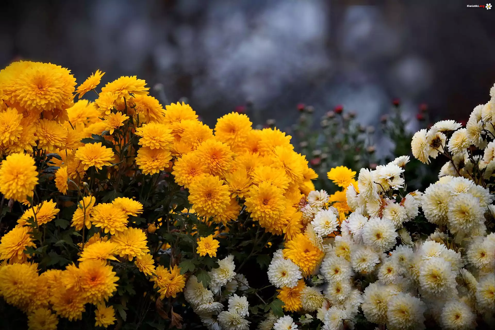 Białe, Żółte, Chryzantemy - Zdjęcia