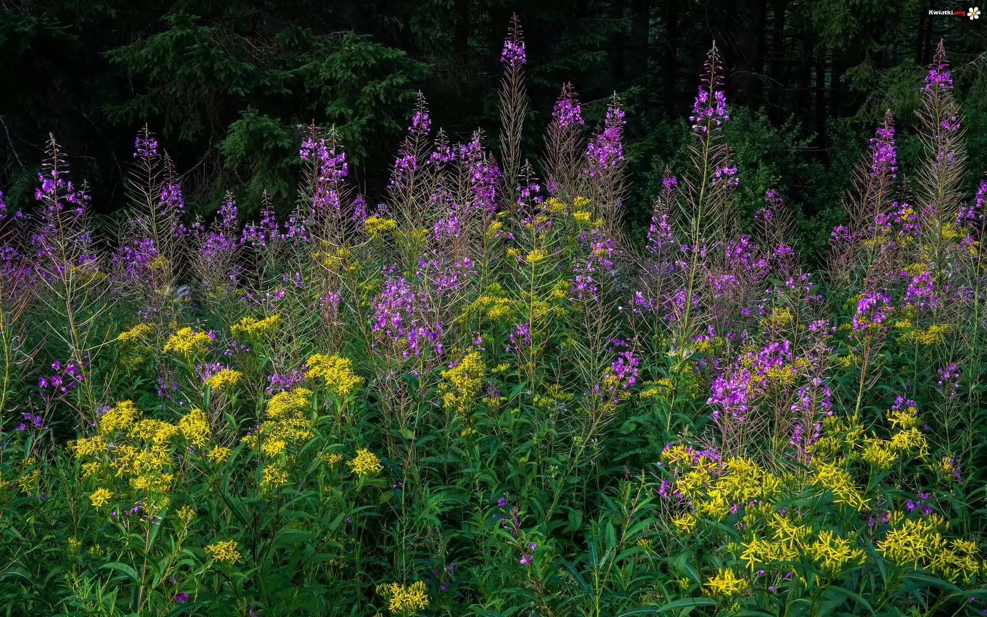 Kwiaty, Żółte, Fioletowe - Zdjęcia