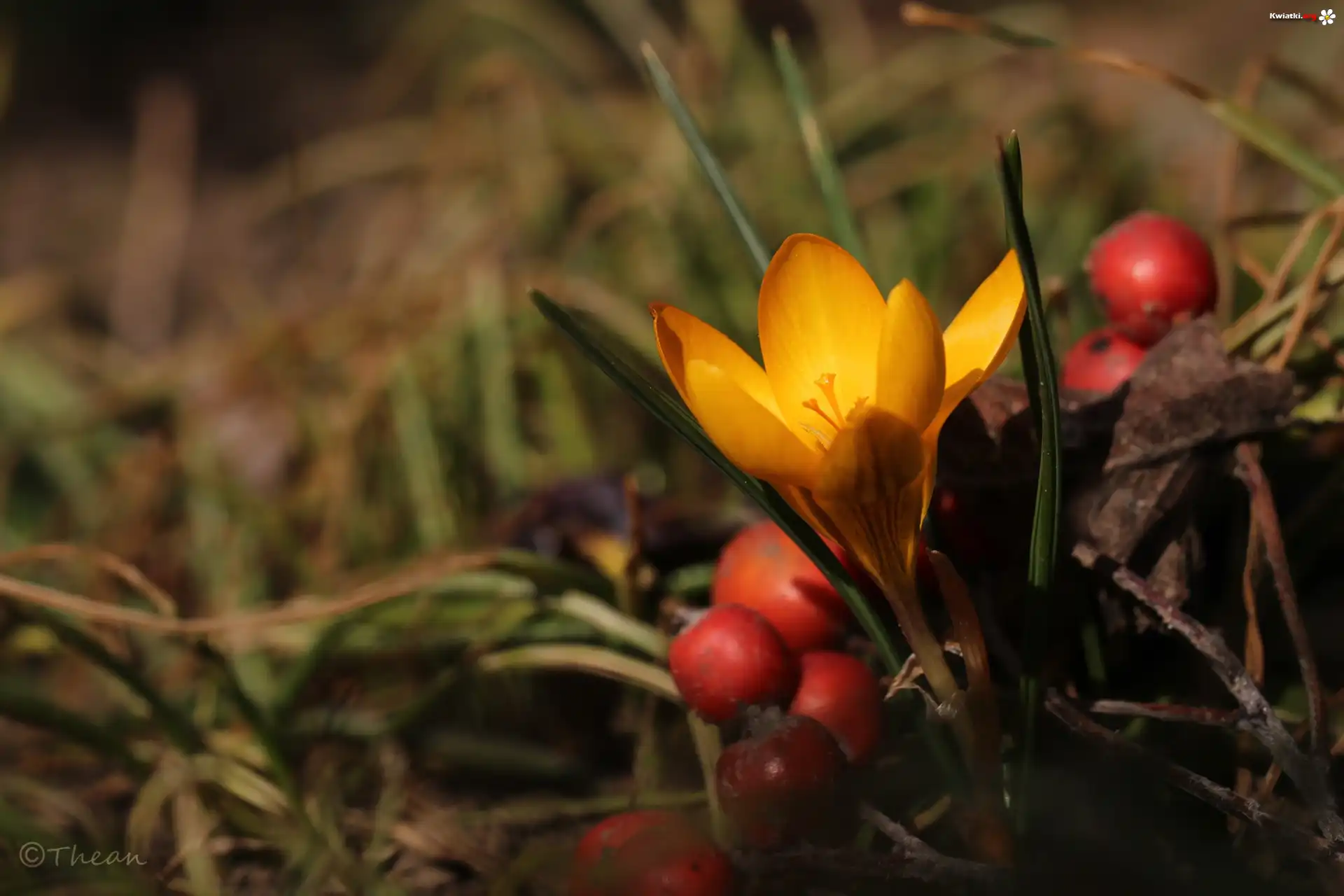 Kwiat Żółty, Krokus, Czerwone, Owoce, Jagody, Wiosna