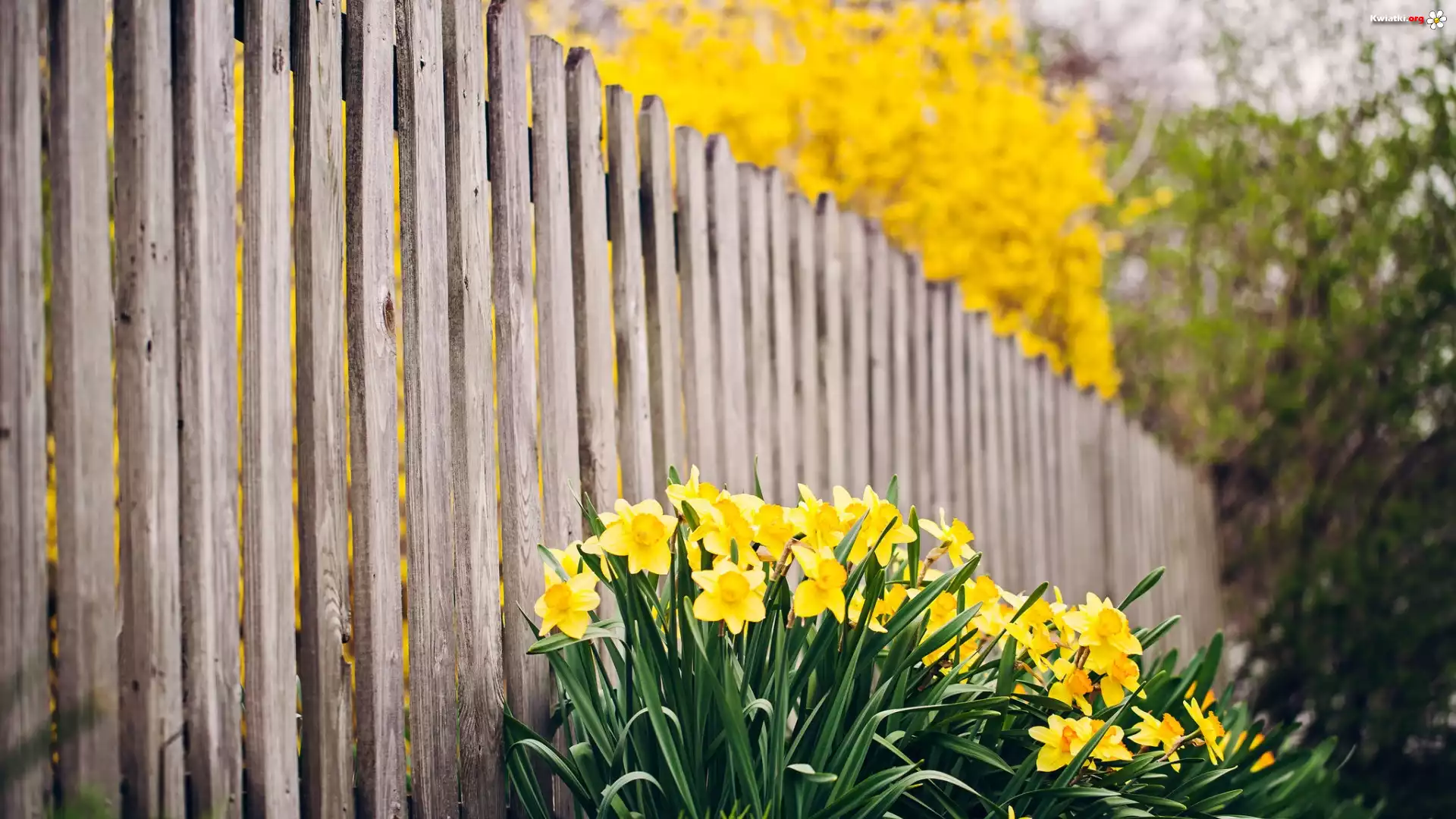 Kwiaty, Żonkile, Płot - Zdjęcia