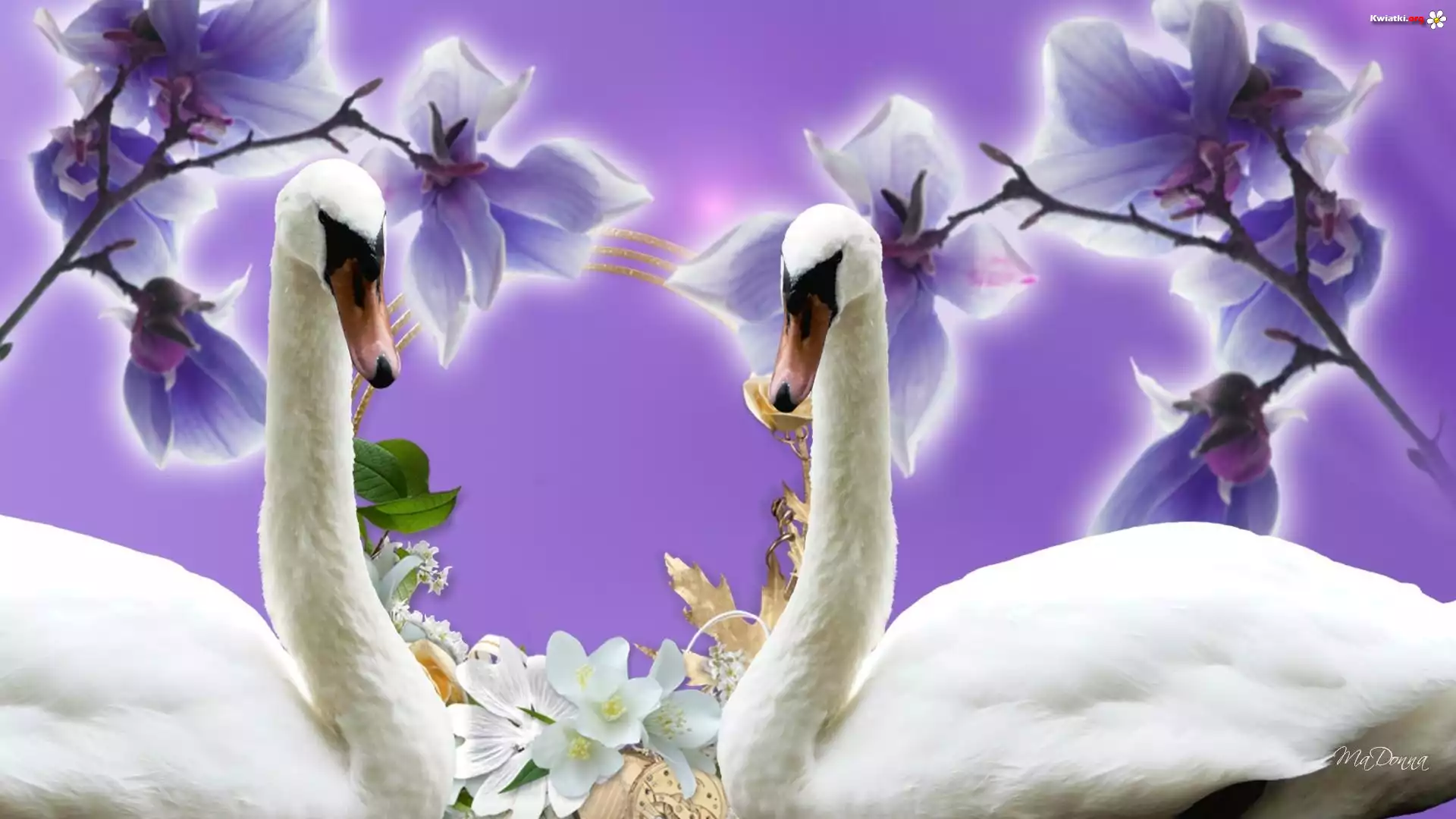 Łabędzie, Orchidea, Grafika - Zdjęcia