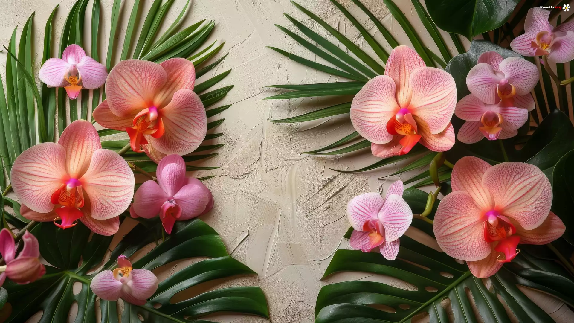 Storczyki, Orchidea, Różowe, Kwiaty, Liście - Zdjęcia
