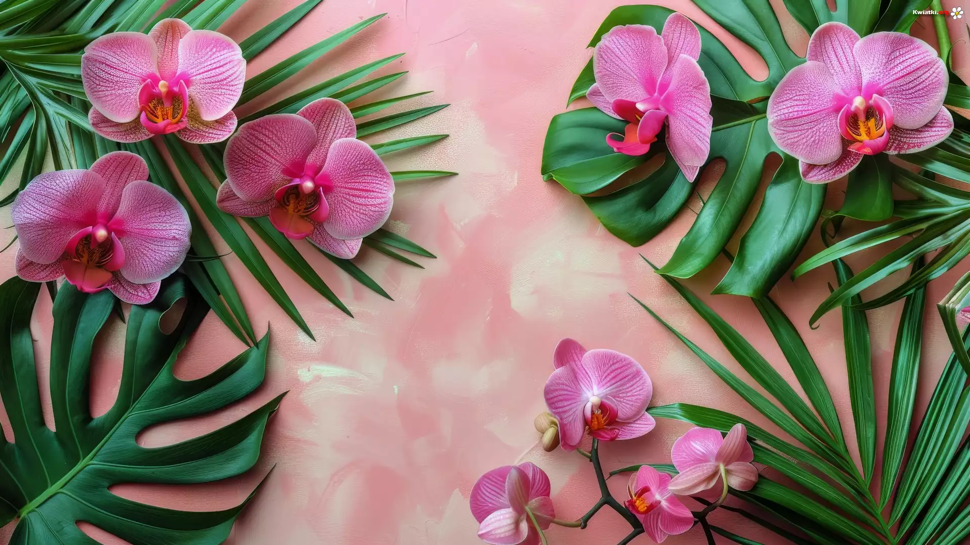 Storczyki, Orchidee, Różowe, Kwiaty, Liście - Zdjęcia