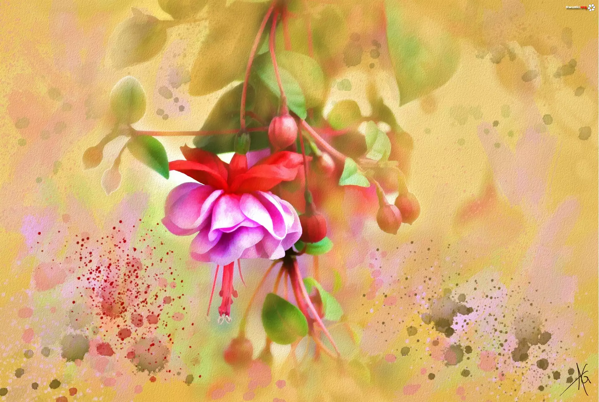 Kwiat Orlik, Kwiaty, Obraz, Akwarela