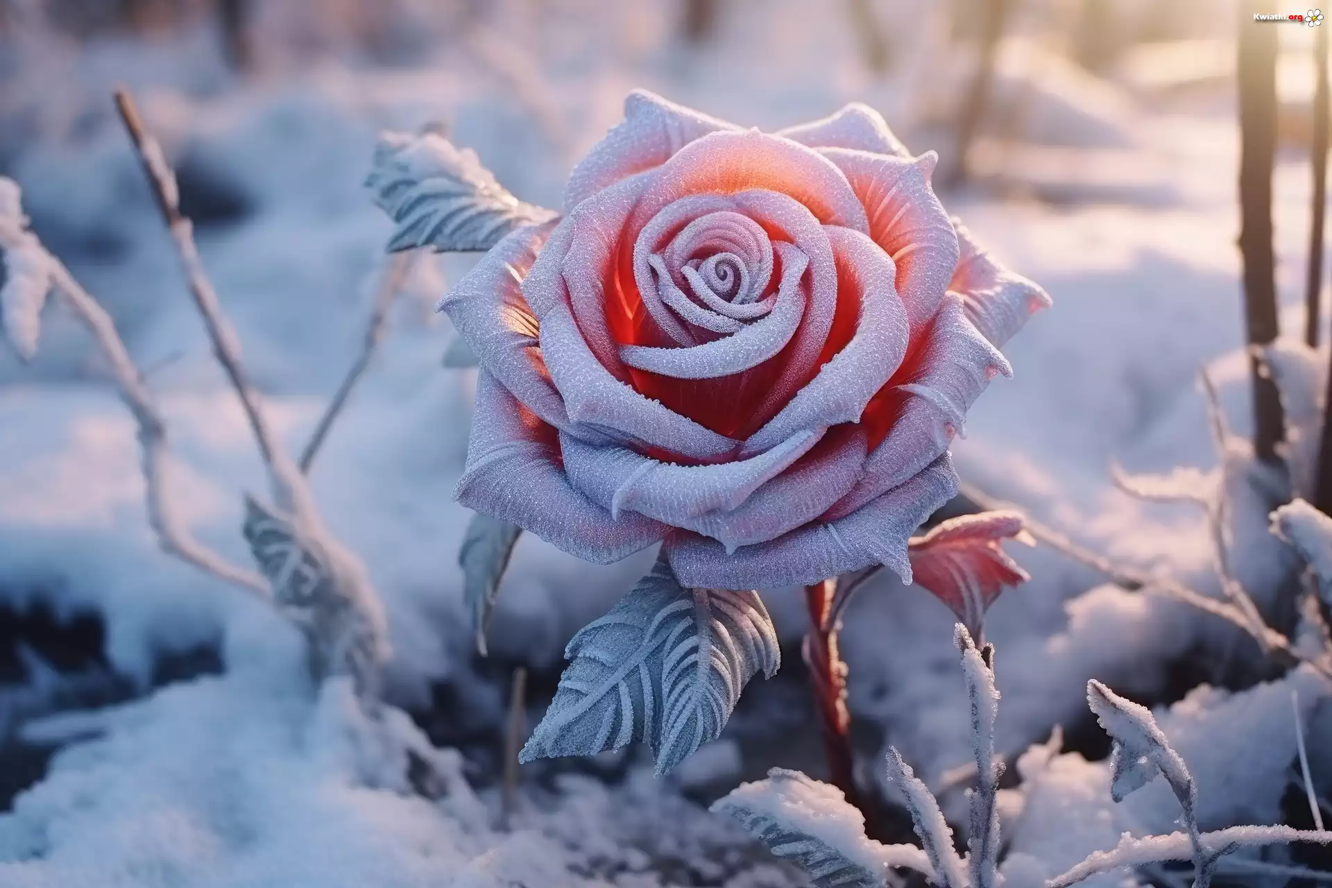 Kwiat Ośnieżona, Róża, Liście