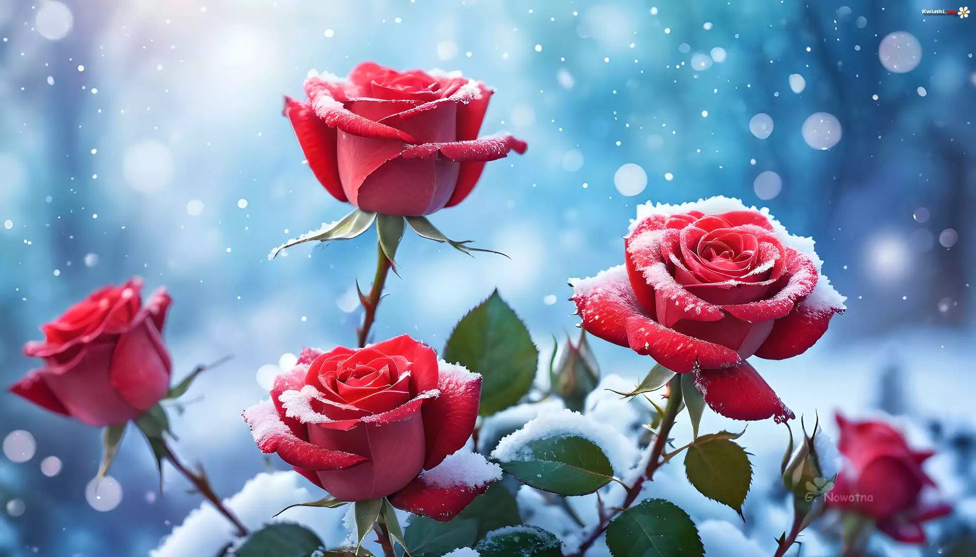 Czerwone, Ośnieżone, Róże, Śnieg, Grafika - Zdjęcia