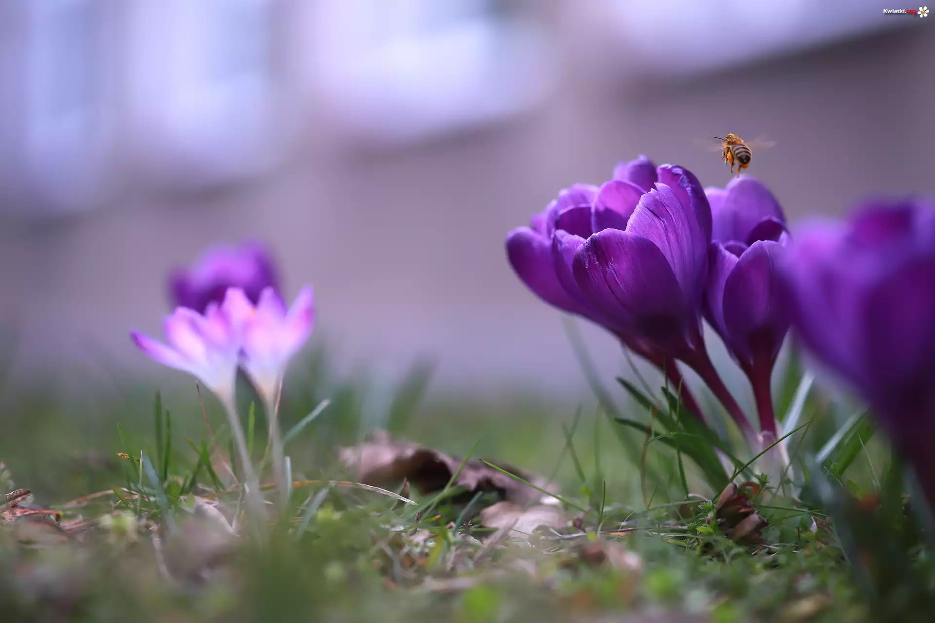 Fioletowe, Krokusy, Pszczoła, Owad - Zdjęcia