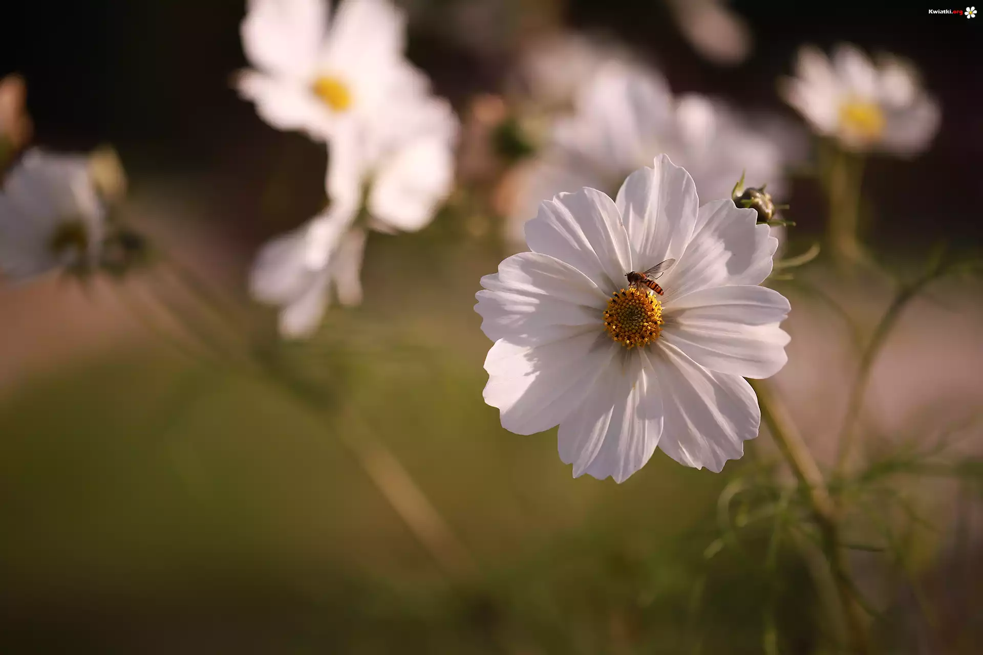 Kosmea, Biały, Kwiat, Owad - Zdjęcia
