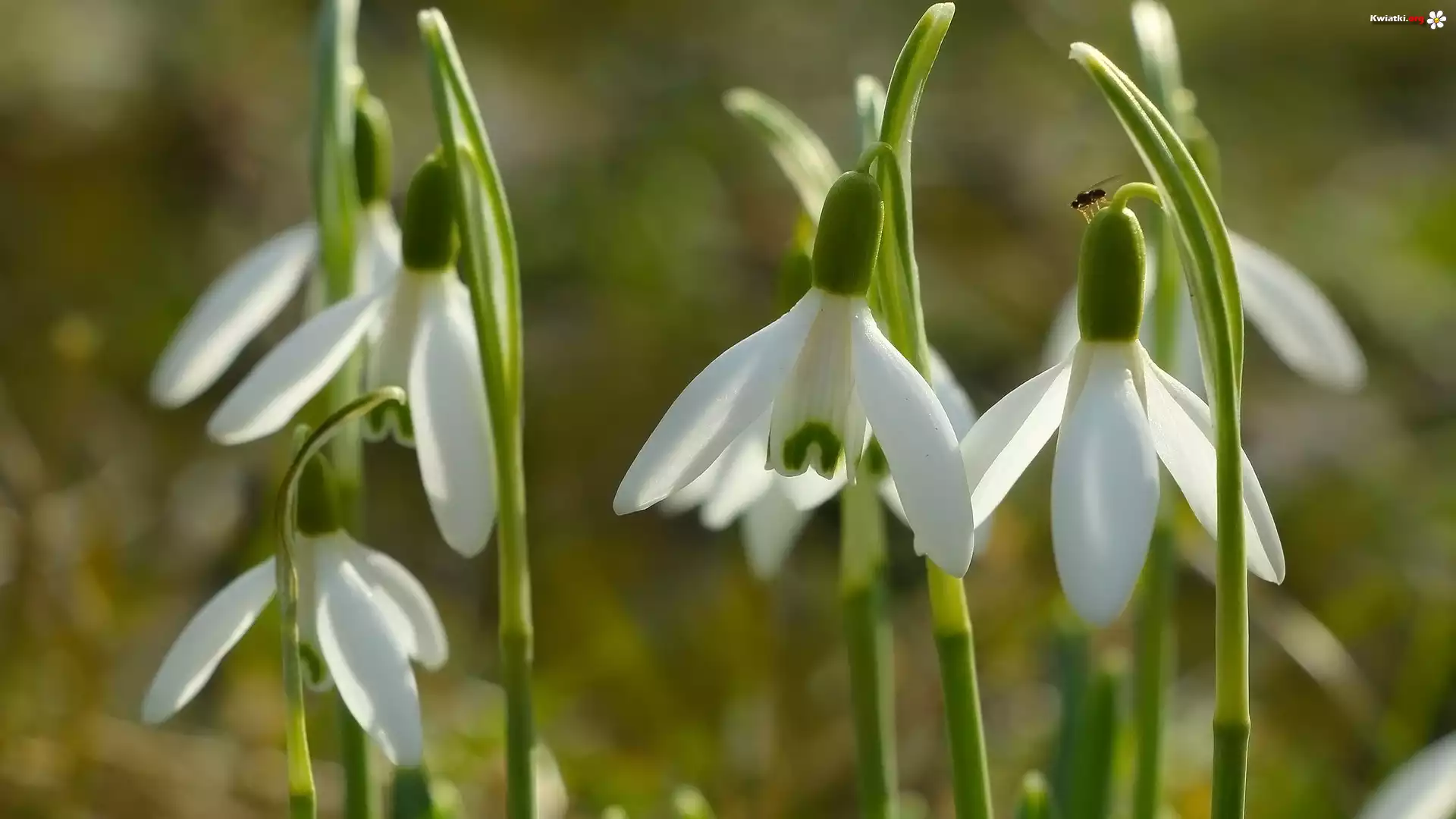Kwiaty, Pochylone, Przebiśniegi, Owad - Zdjęcia