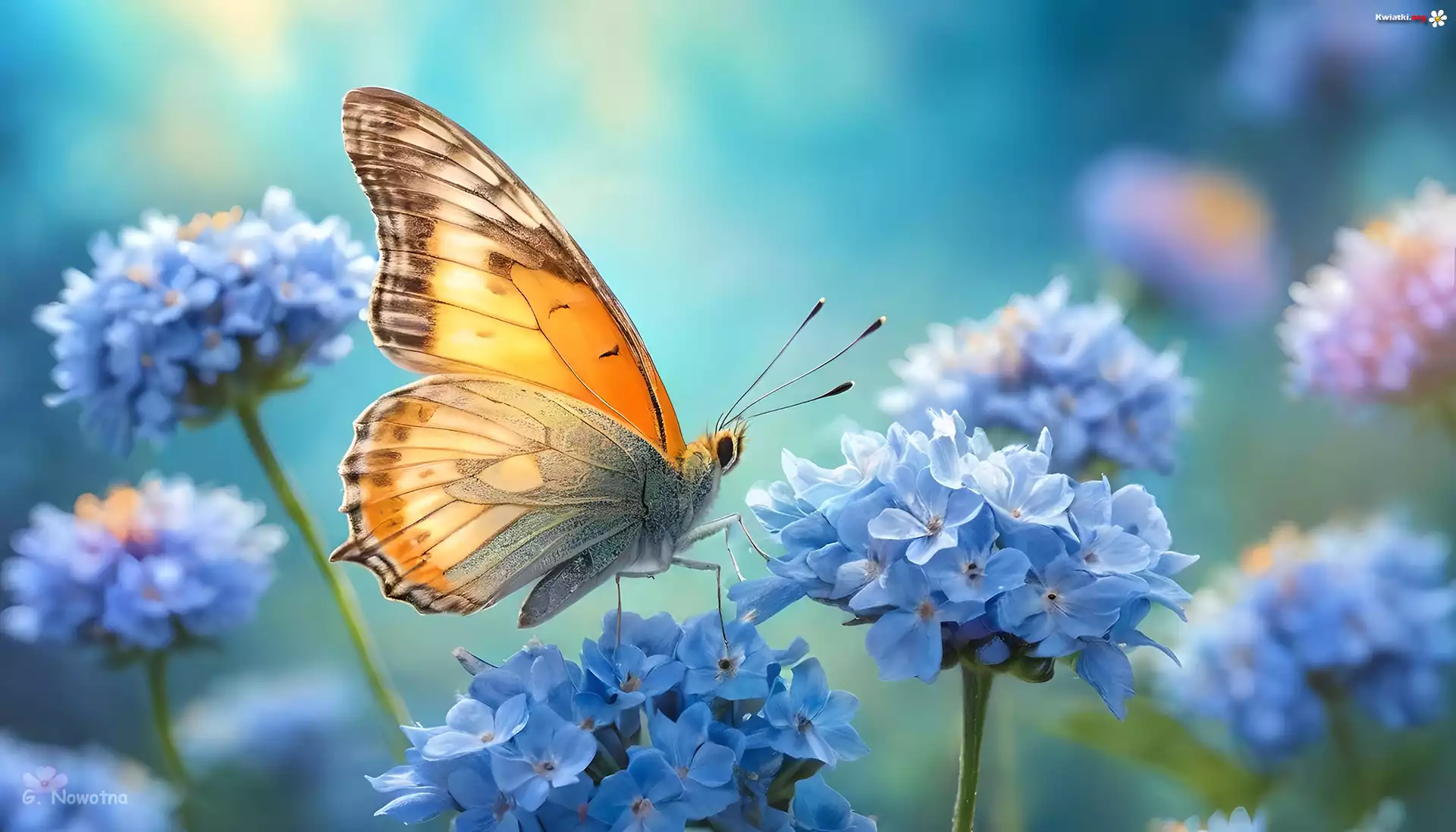 Motyl, Owad, Niebieskie, Kwiaty, Grafika - Zdjęcia