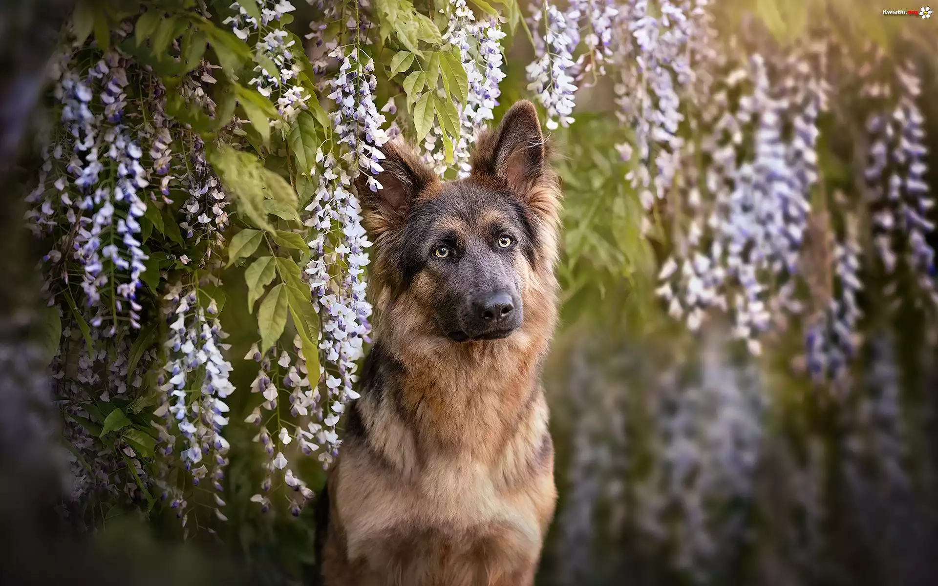 Kwiat Pies, Owczarek niemiecki, Kwiaty, Glicynia