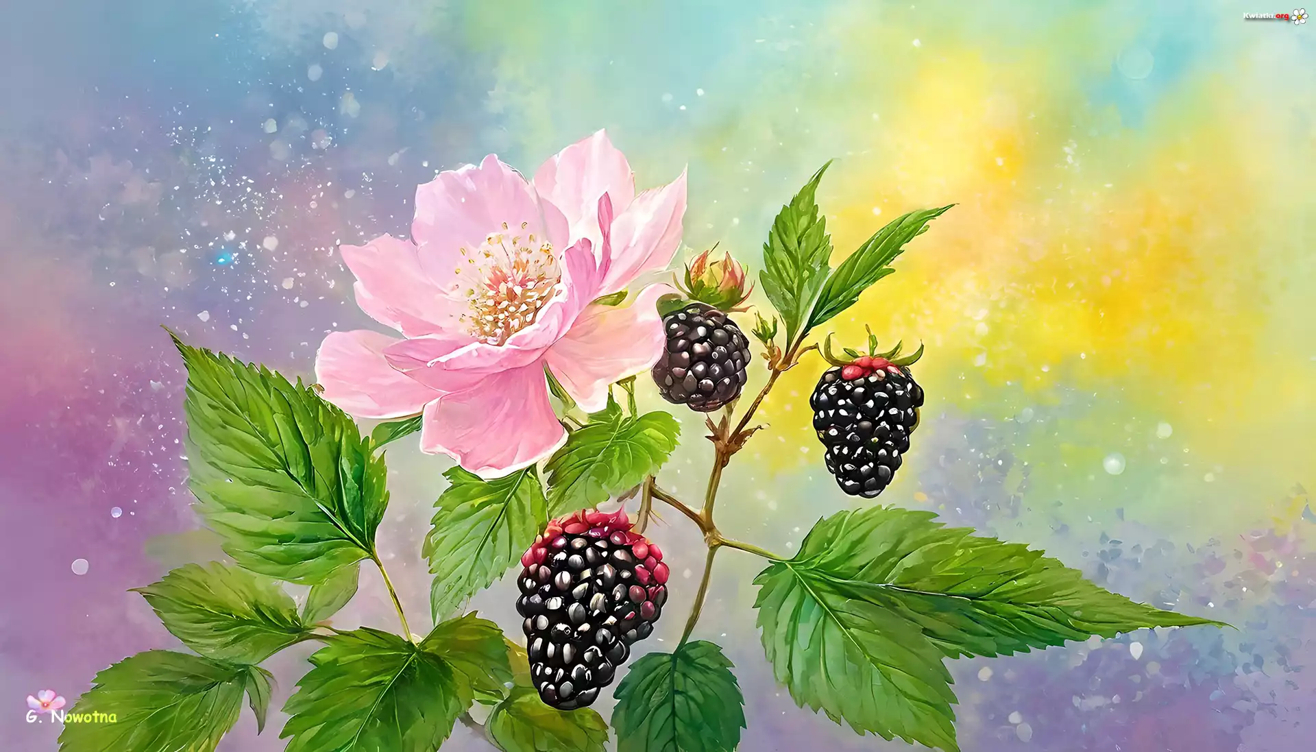 Jeżyny, Różowy, Kwiat, Owoce - Zdjęcia
