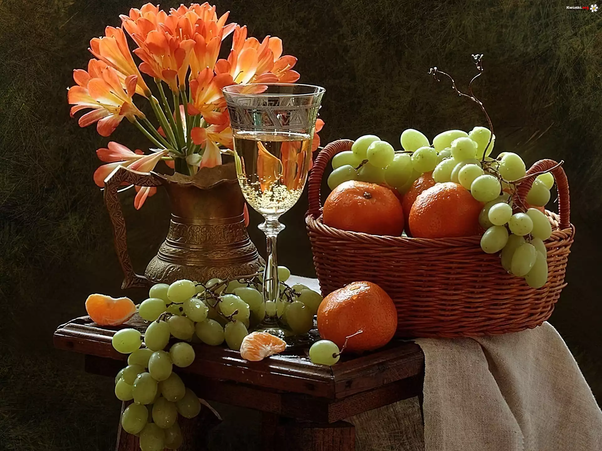 Kosz, Owoce, Kwiaty, Kieliszek - Zdjęcia