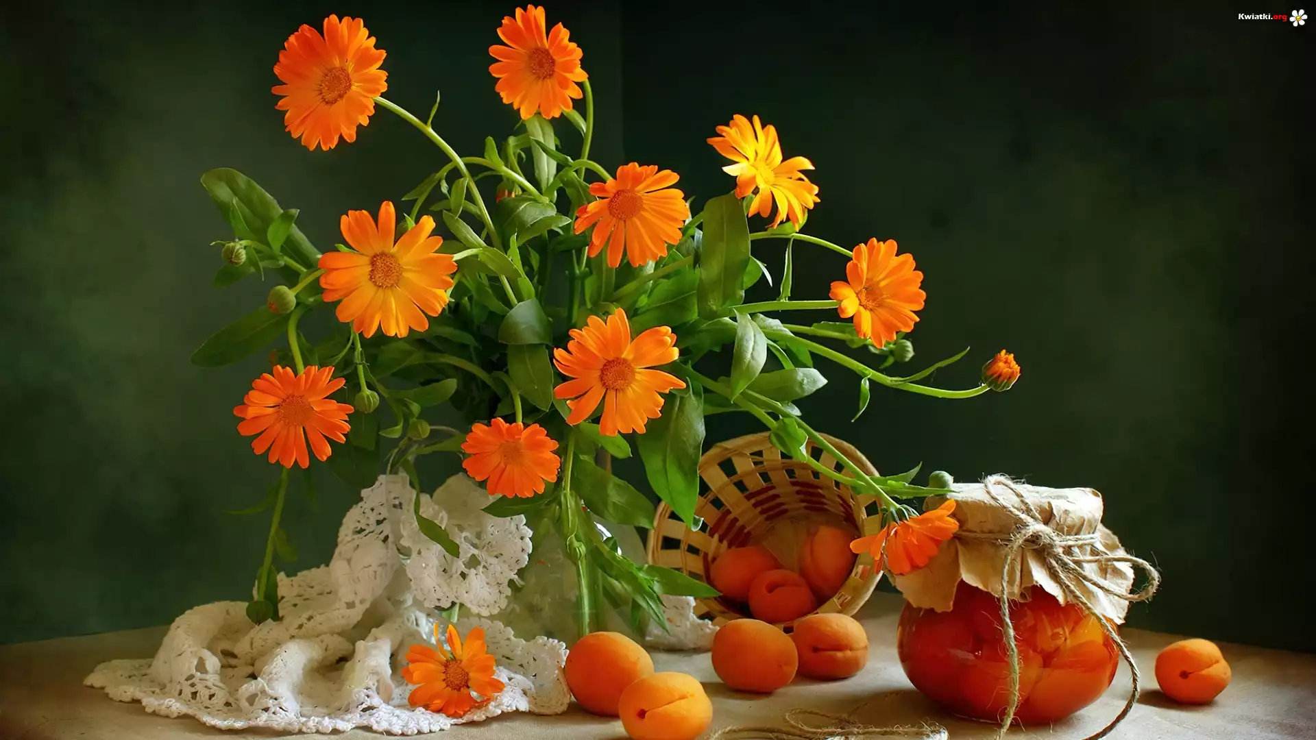 Żółte, Kwiaty, Owoce, Morele - Zdjęcia