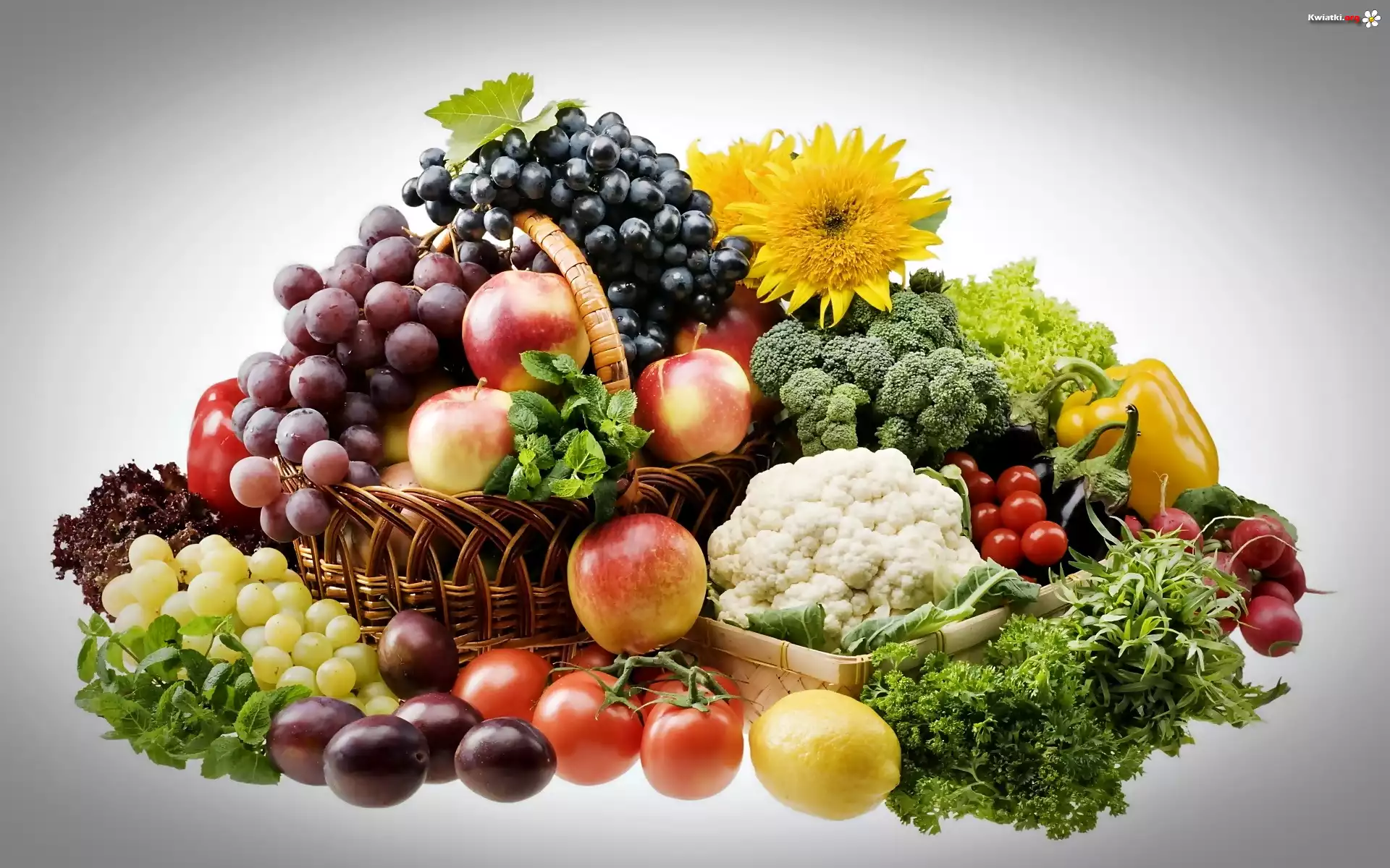 Owoce, Warzywa, Kwiaty, Jabłka, Winogrona, Śliwki - Zdjęcia