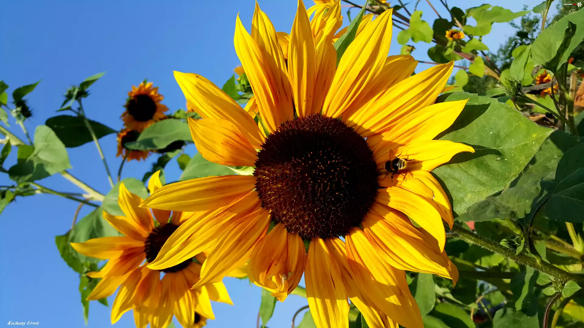 Słoneczniki, Ozdobne, Pszczoła - Zdjęcia