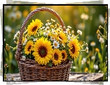 Słoneczniki ozdobne, Stokrotki, Wiklinowy, Koszyk - Zdjęcia