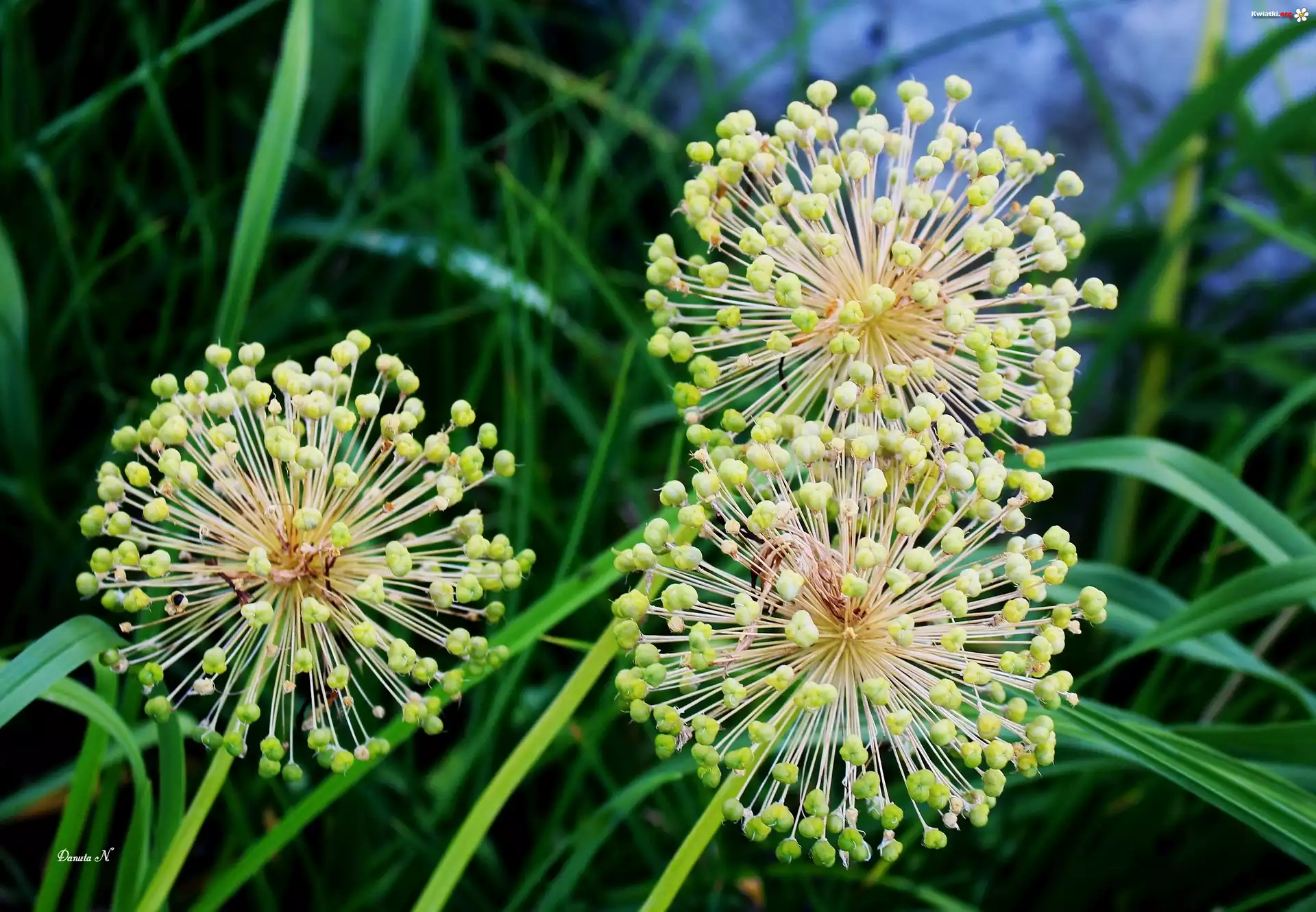 Czosnek, Ozdobny, Trzy, Główki, Ogród, Lato, Trawa - Zdjęcia