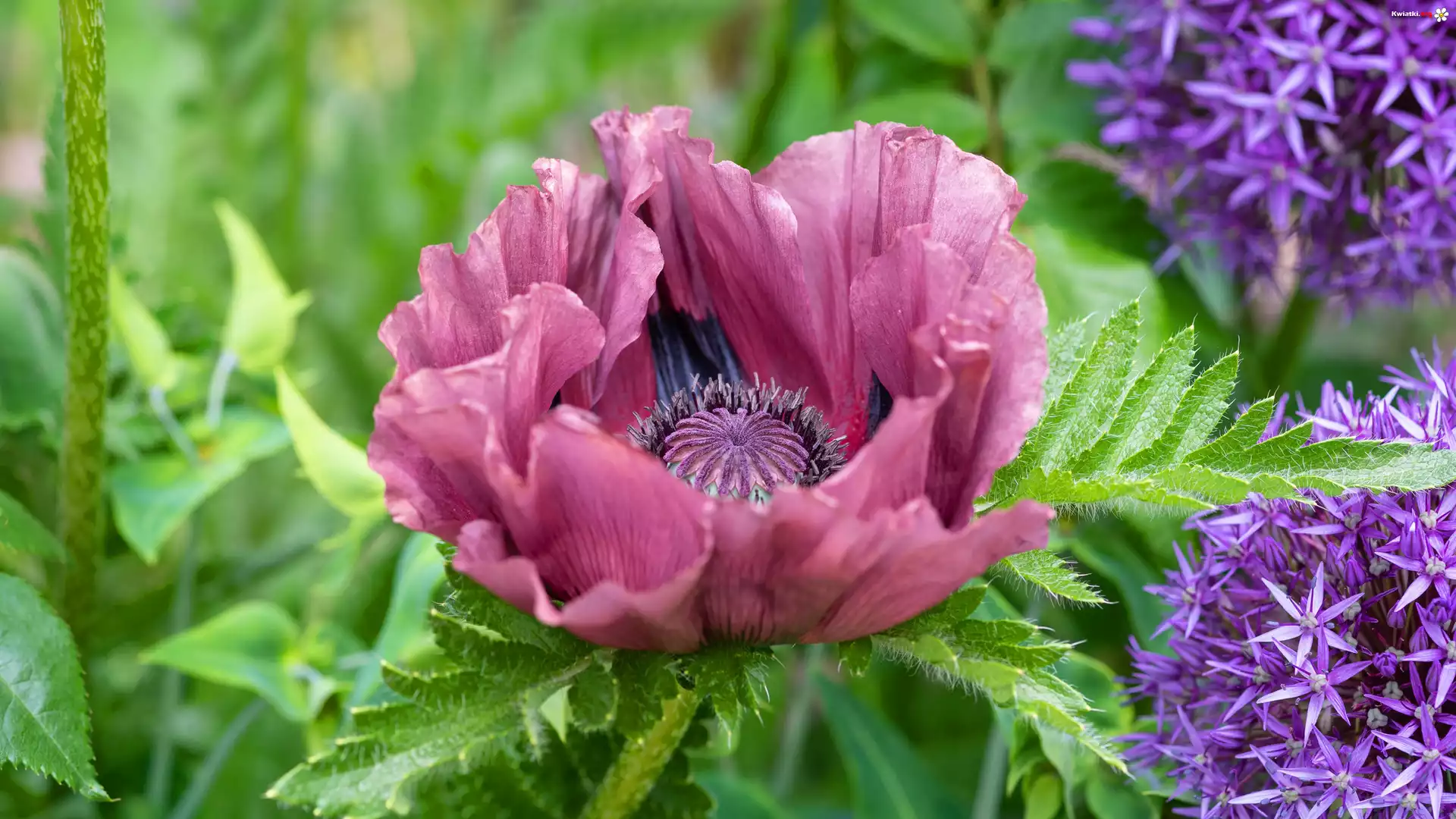Mak, Fioletowe, Kwiaty, Czosnek ozdobny - Zdjęcia
