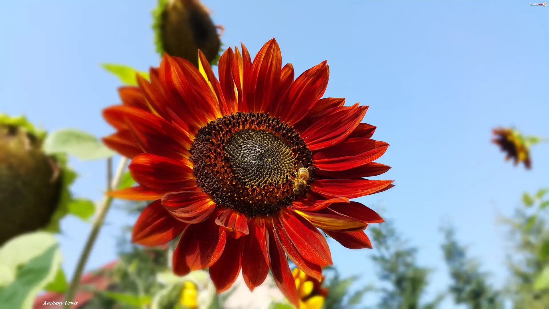 Słonecznik, Ozdobny, Pszczoła - Zdjęcia