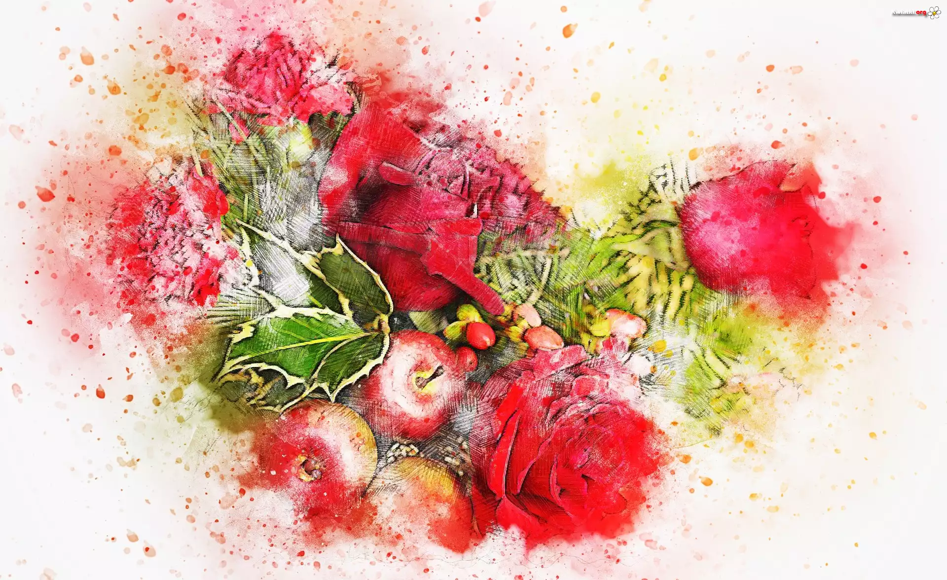 Kwiat Paintography, Kwiaty, Róże, Jabłka