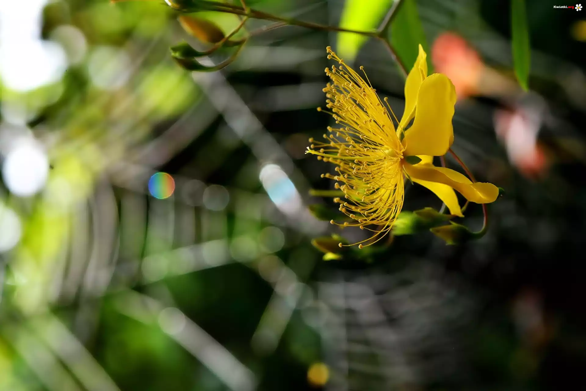 Kwiat Żółty, Kwiat, Dziurawiec, Pajęczyna, Światło