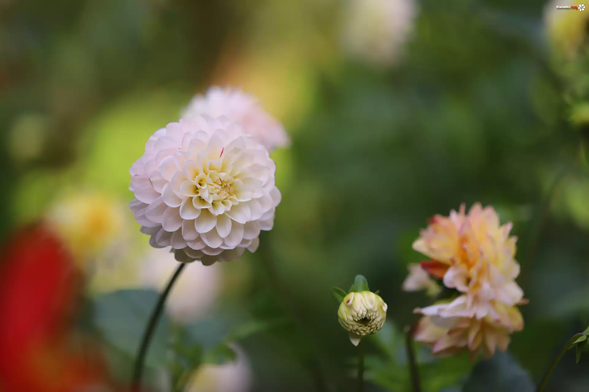 Biała, Dalia, Kwiat, Pąk - Zdjęcia