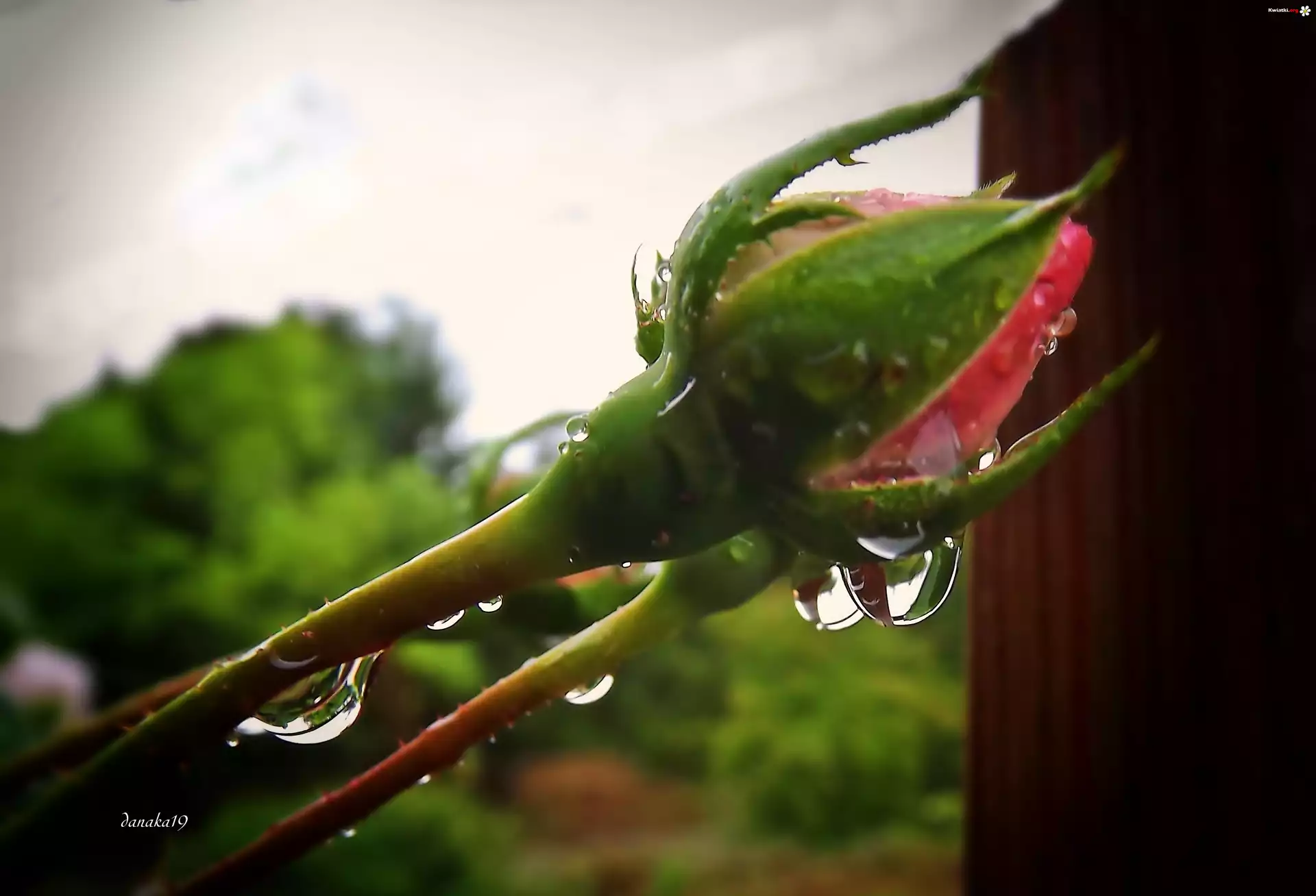 Pąk, Róży, Krople, Deszczu, Makro - Zdjęcia