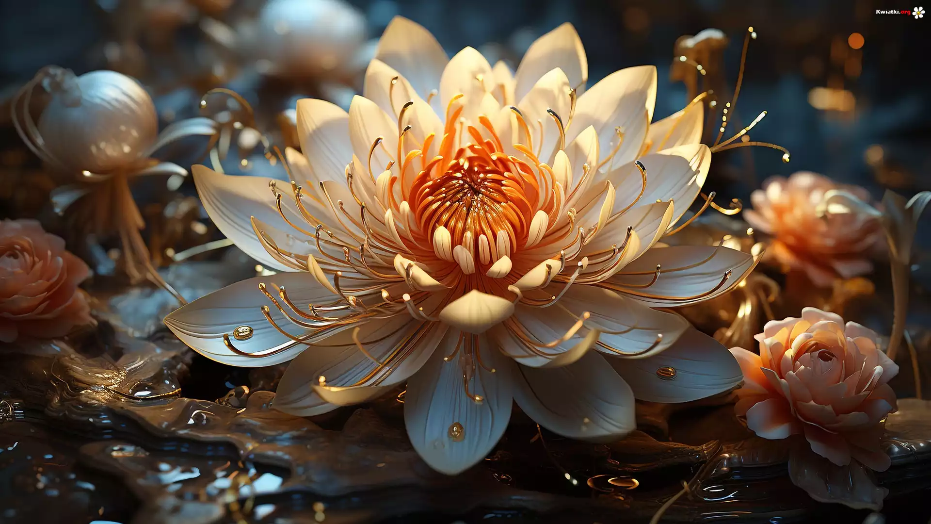 Kwiat Lilia wodna, Kwiaty, Pąki, Odbicie, 2D